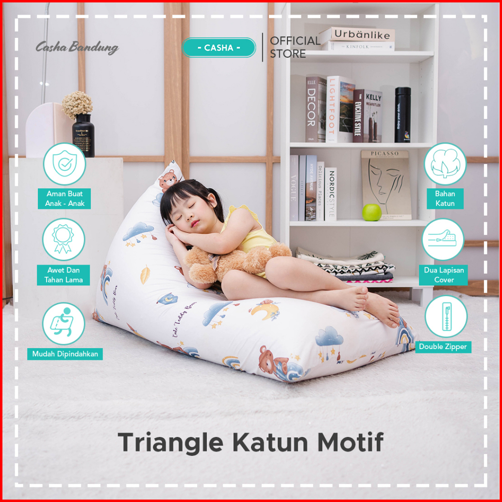 Casha- Bean Bag Triangle Medium Katun Motif Dengan Isi - Bean Bag Katun Motif