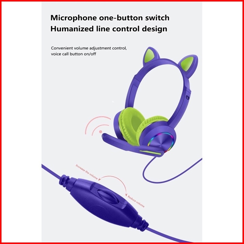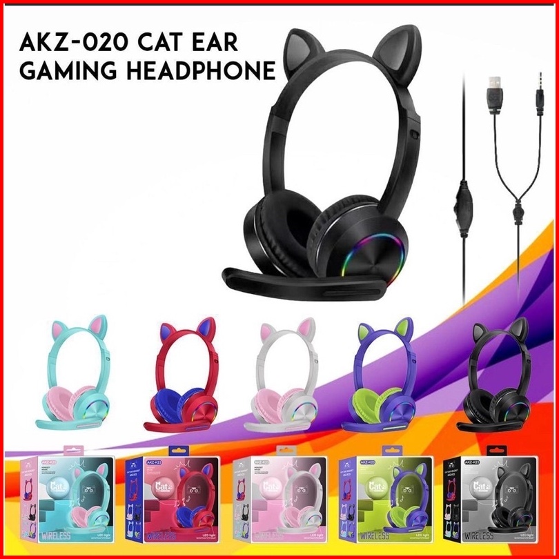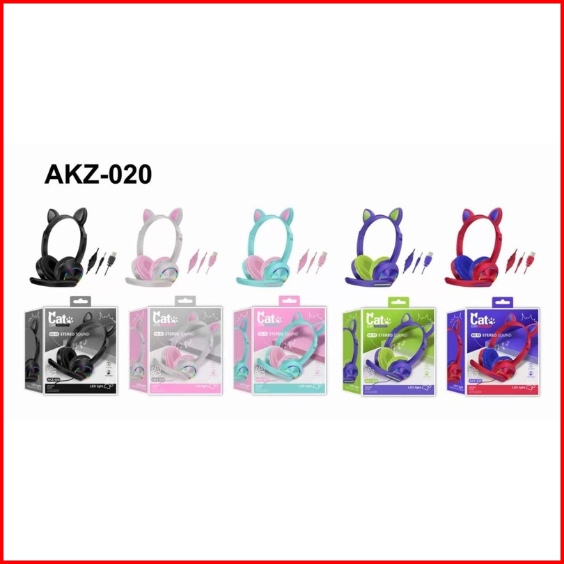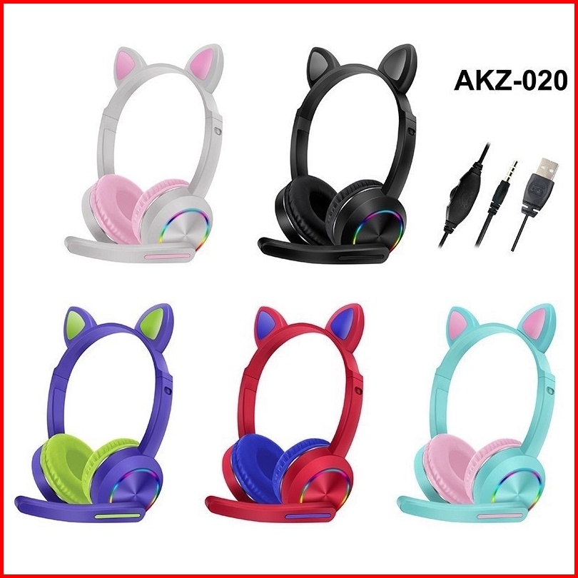 Headset Gaming Led Telinga Kucing Model Akz-020 With Microphone Jack 3.5mm Headphone Gaming
