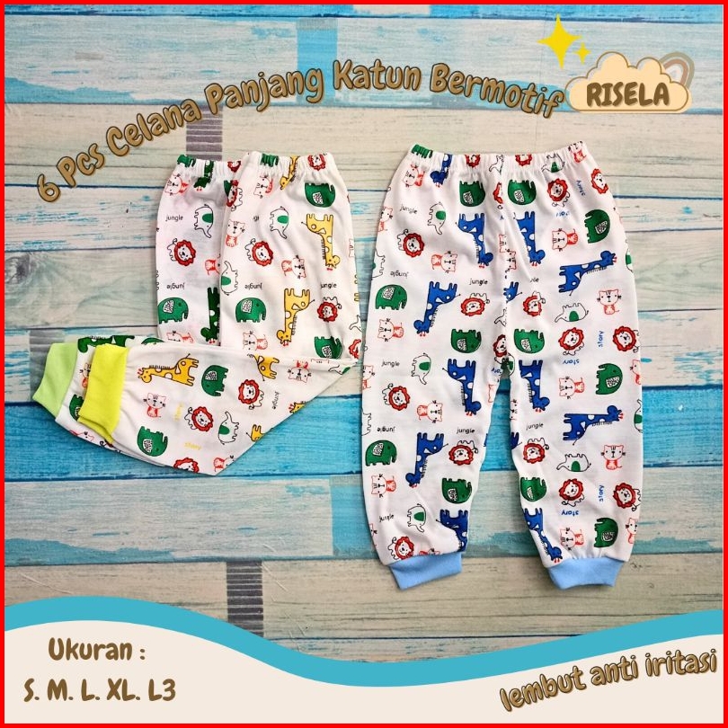 6 Pcs Celana Panjang Bayi Katun Motif Dan Polos Buka Kaki Untuk Bayi Baru Lahir New Born Sampai Usia 4 Tahun 0-4 Tahun B