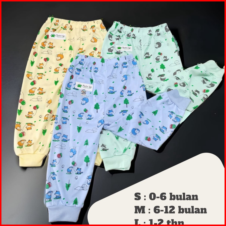 3 Pcs Celana Panjang Bayi Polos Motif Usia 0-5 Tahun