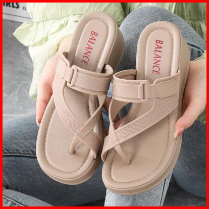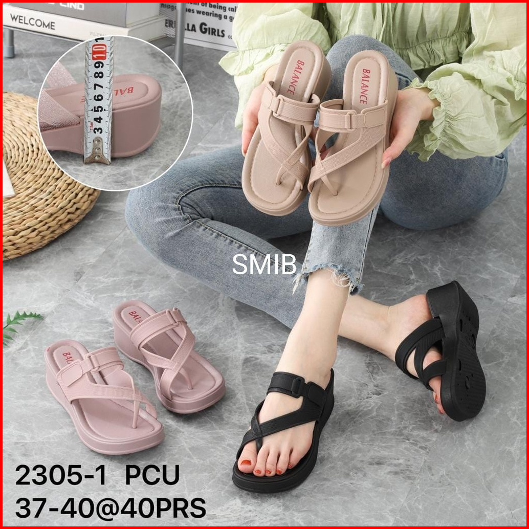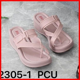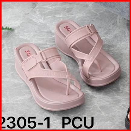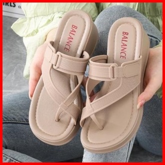 Sandal Jepit Wanita Karet Import Balance Motif Tali Silang Ringan Empuk Sol Tebal 5 Cm 2305-1
