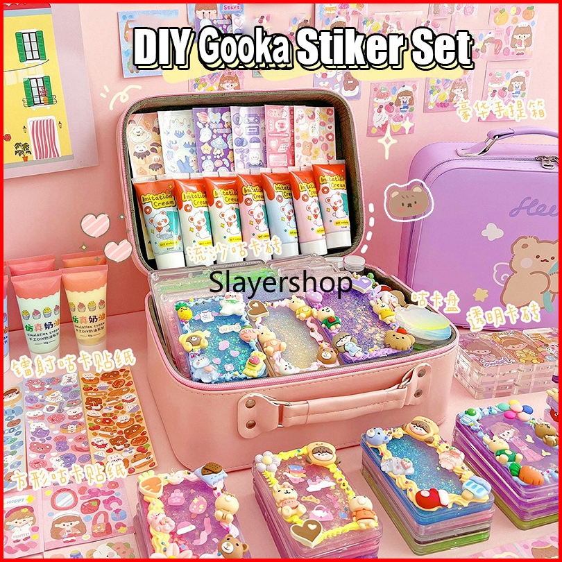 885pcs 685pcs Diy Gu Ka Set Gantungan Kunci Akrilik Diy Keychain Set Kartu Stiker Luca Kotak Gu Ka Cream Gum Kartun Main