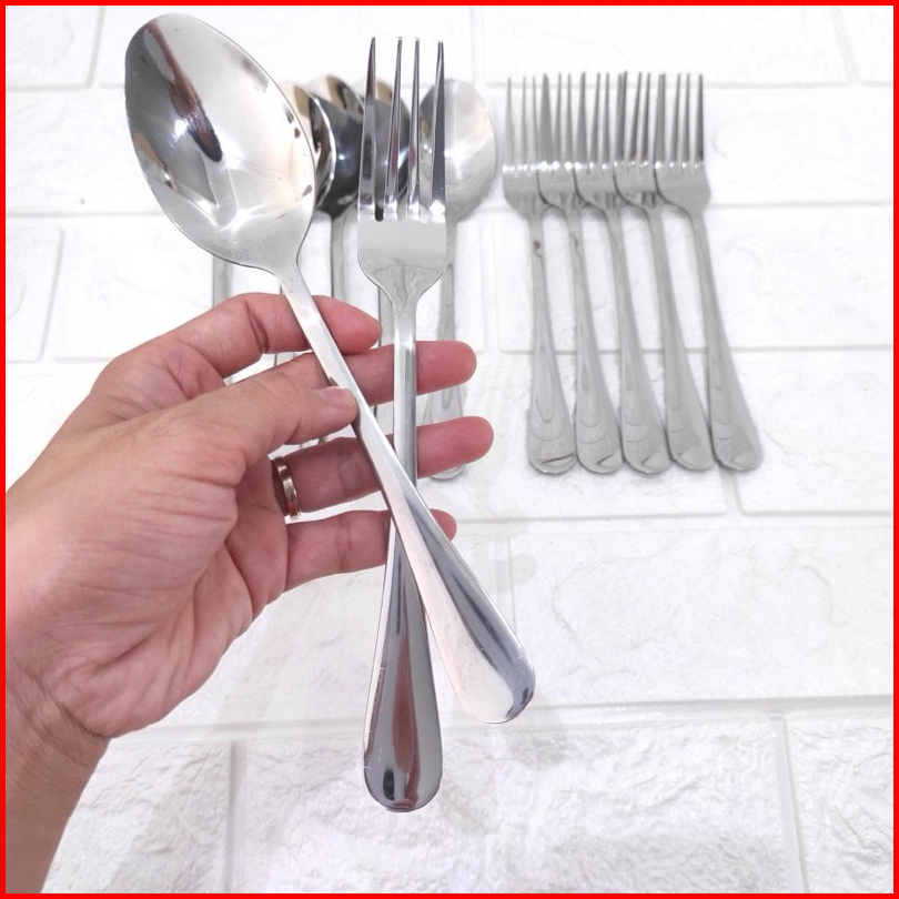 6pcs Sendok Garpu Makan Hotel Stainless Tebal Kualitas Premium Sendok Makan Polos Grade Premium Sendok Teh Garpu Kue Sup