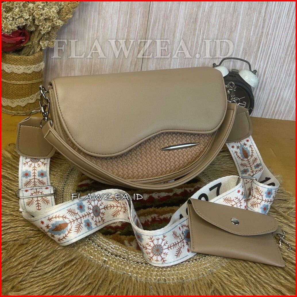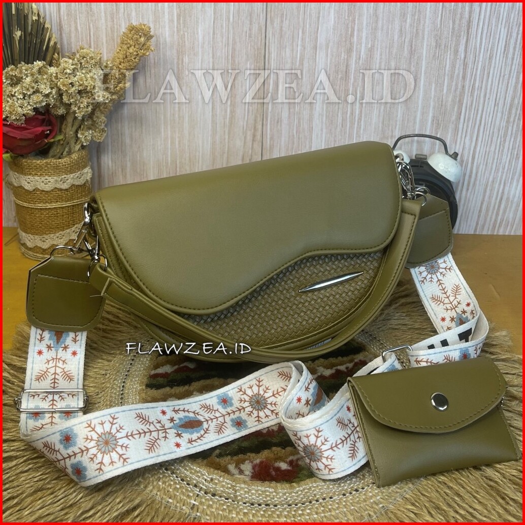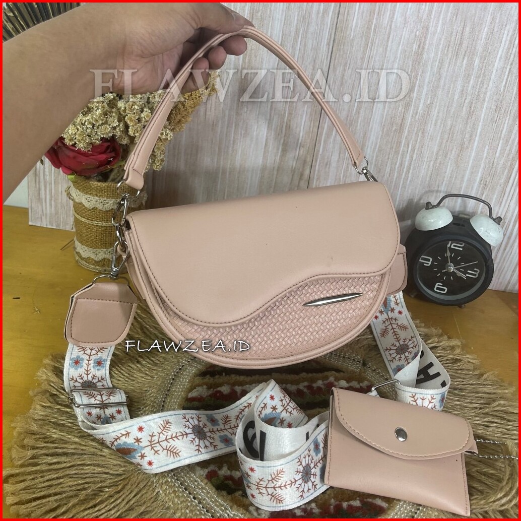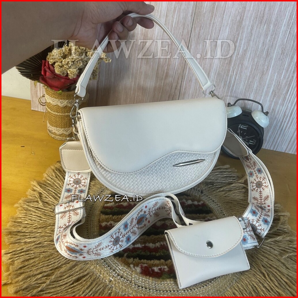 Flawzea Bag Selempang Wanita Halfmoon Korean Lady Tali Lisban Snow Premium