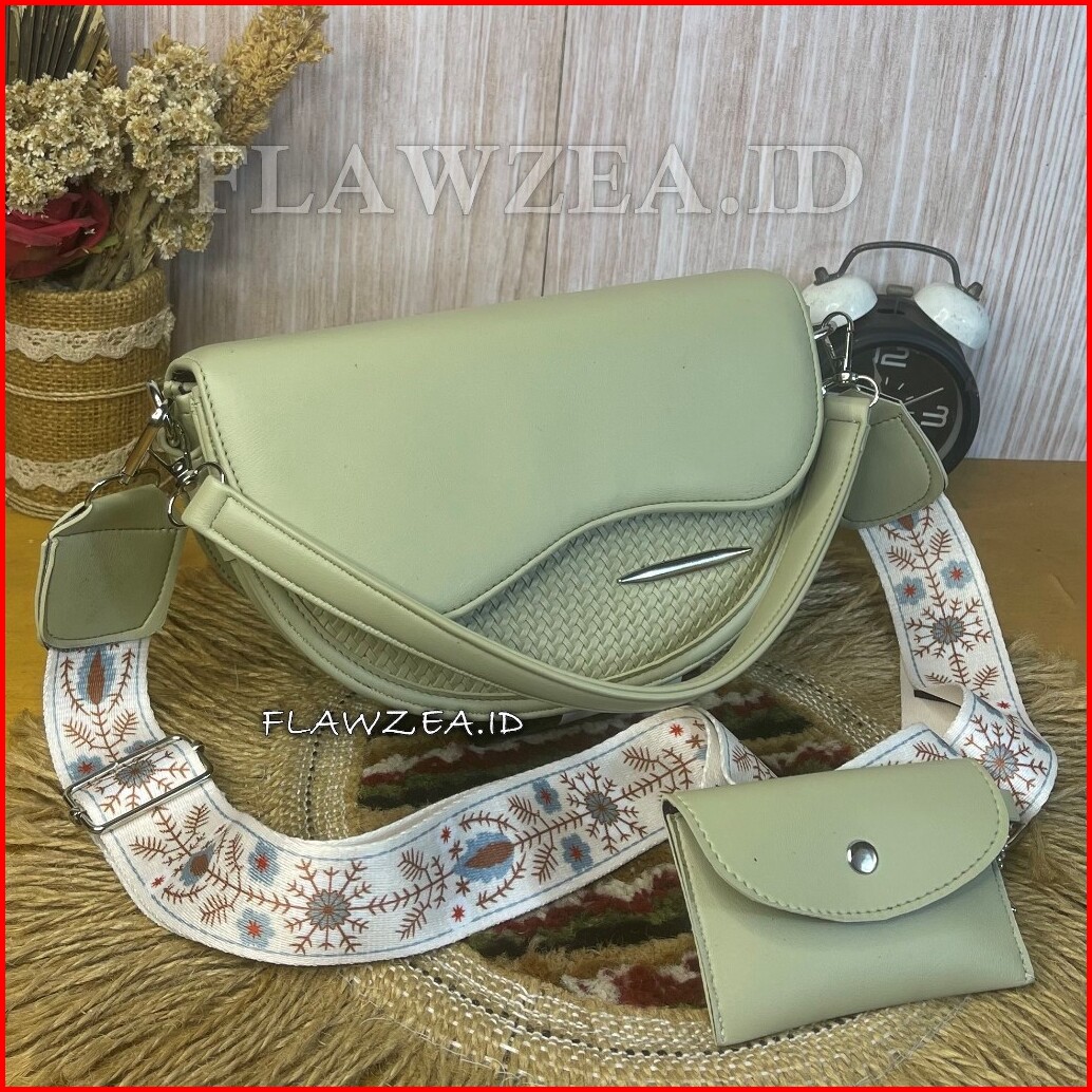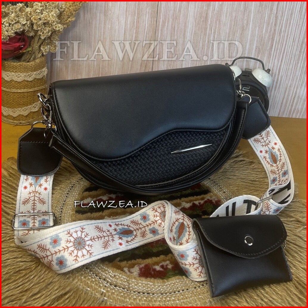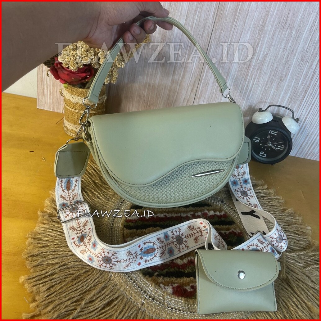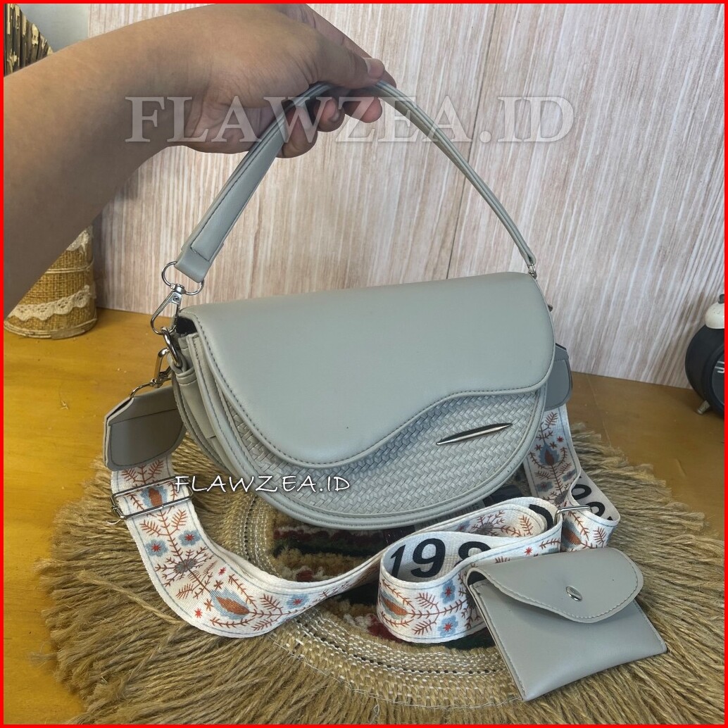 Flawzea Bag Selempang Wanita Halfmoon Korean Lady Tali Lisban Snow Premium