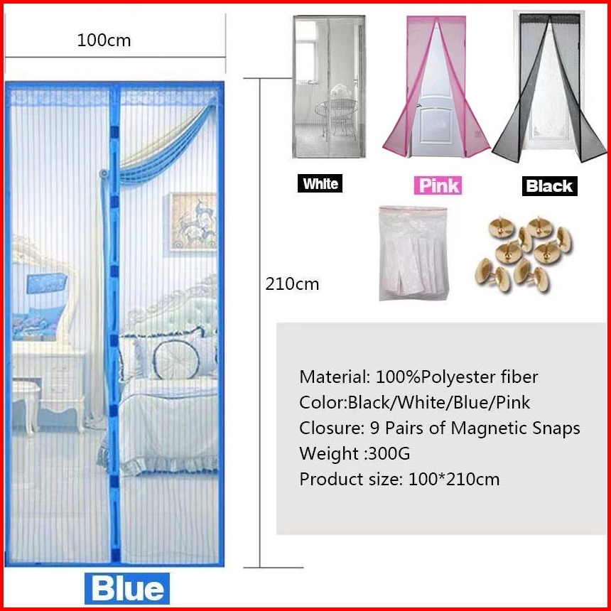 90 210 100 210cm Layar Magnetik Tirai Pintu Anti Nyamuk Terbang Serangga Layar Mesh Penutupan Otomatis