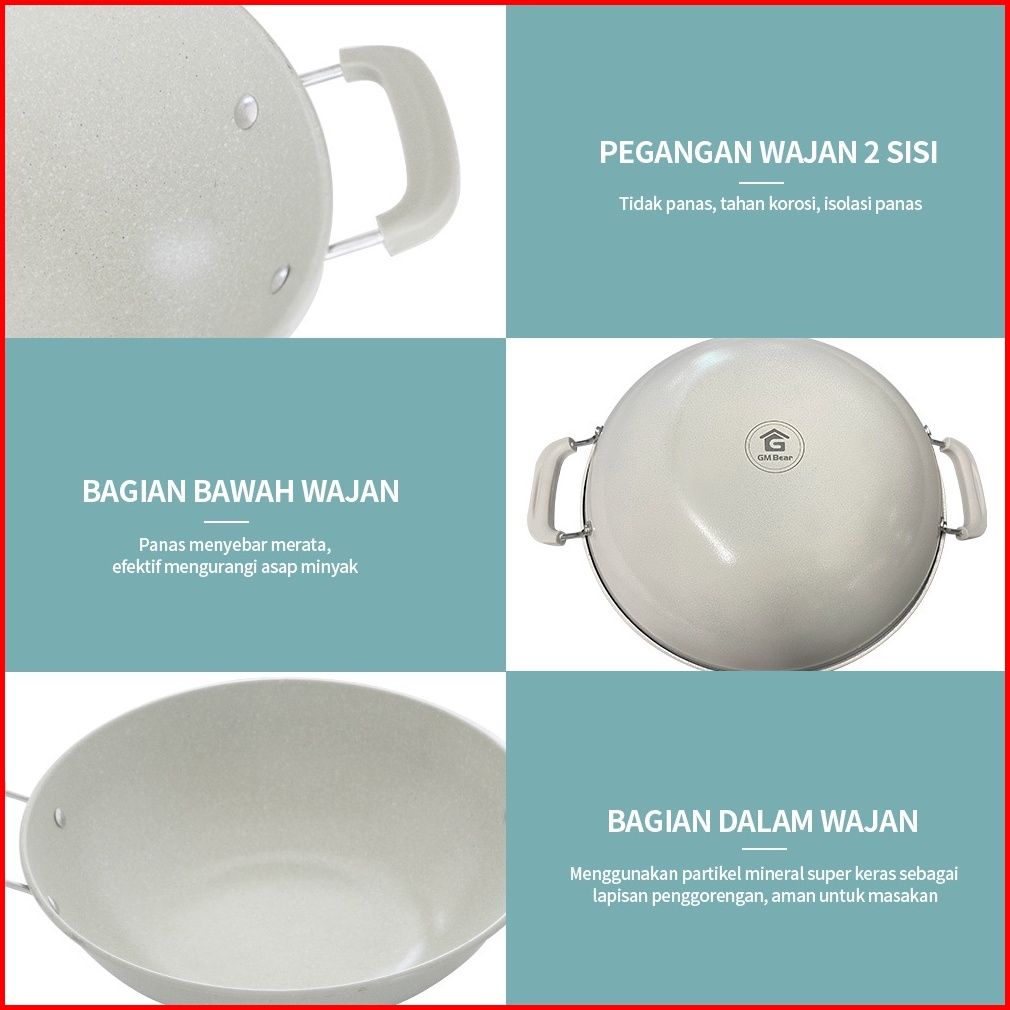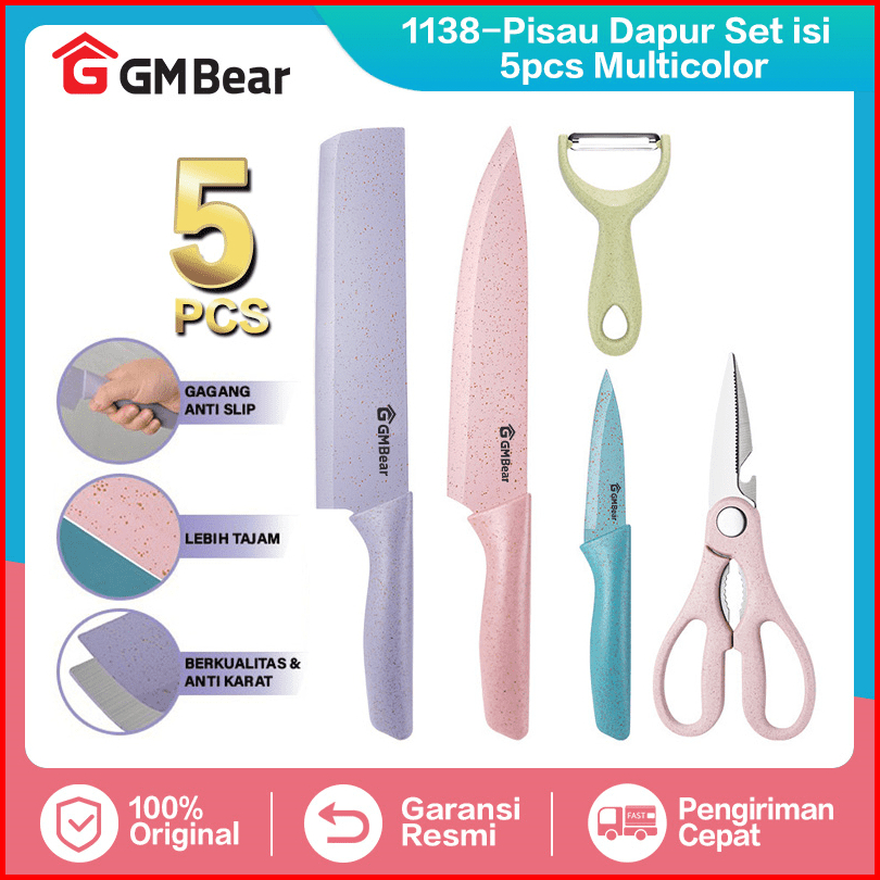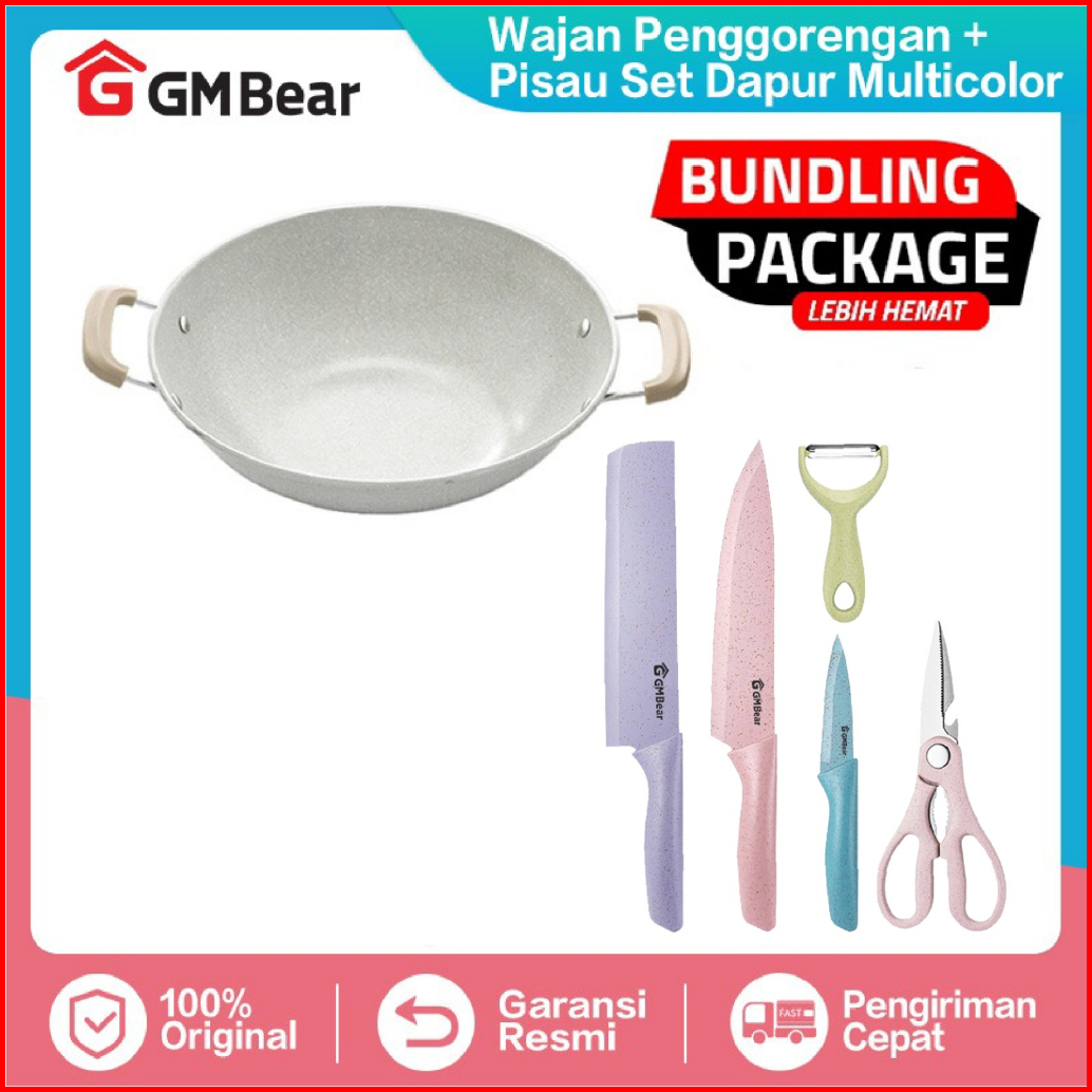 Gm Bear Bundle Hemat Wajan Penggorengan 32cm 1238 Pisau Dapur Set 1138 - Package Alat Masak