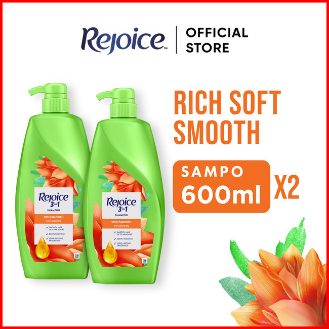 Rejoice Sampo Rich Halus Lembut Argan Perawatan Rambut 600ml X2 Rejoice Shampoo