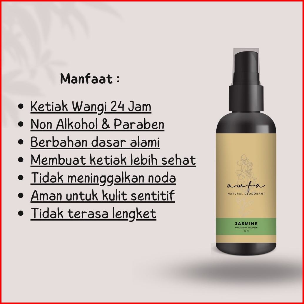 Awfa Natural Deodorant Spray - 60ml Deodoran Tawas Cair Alami Hilangkan Bau Badan Mencerahkan Ketiak