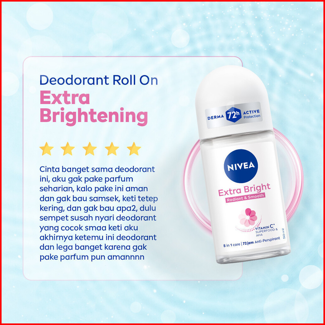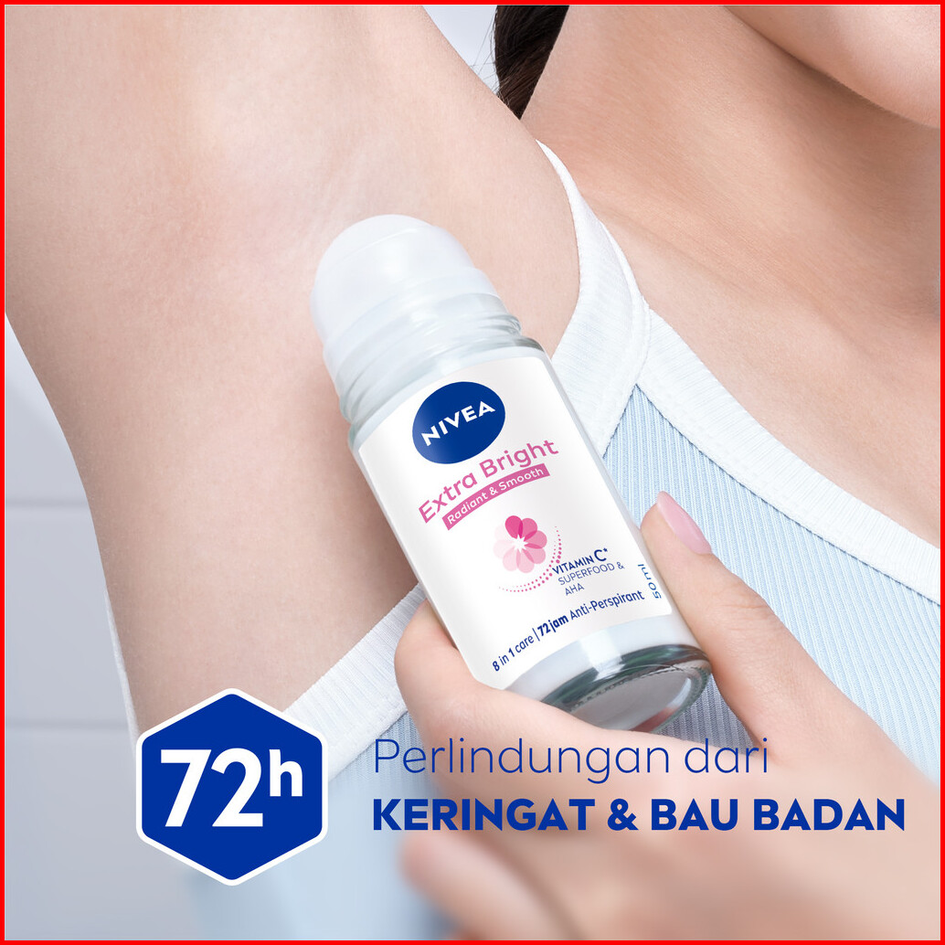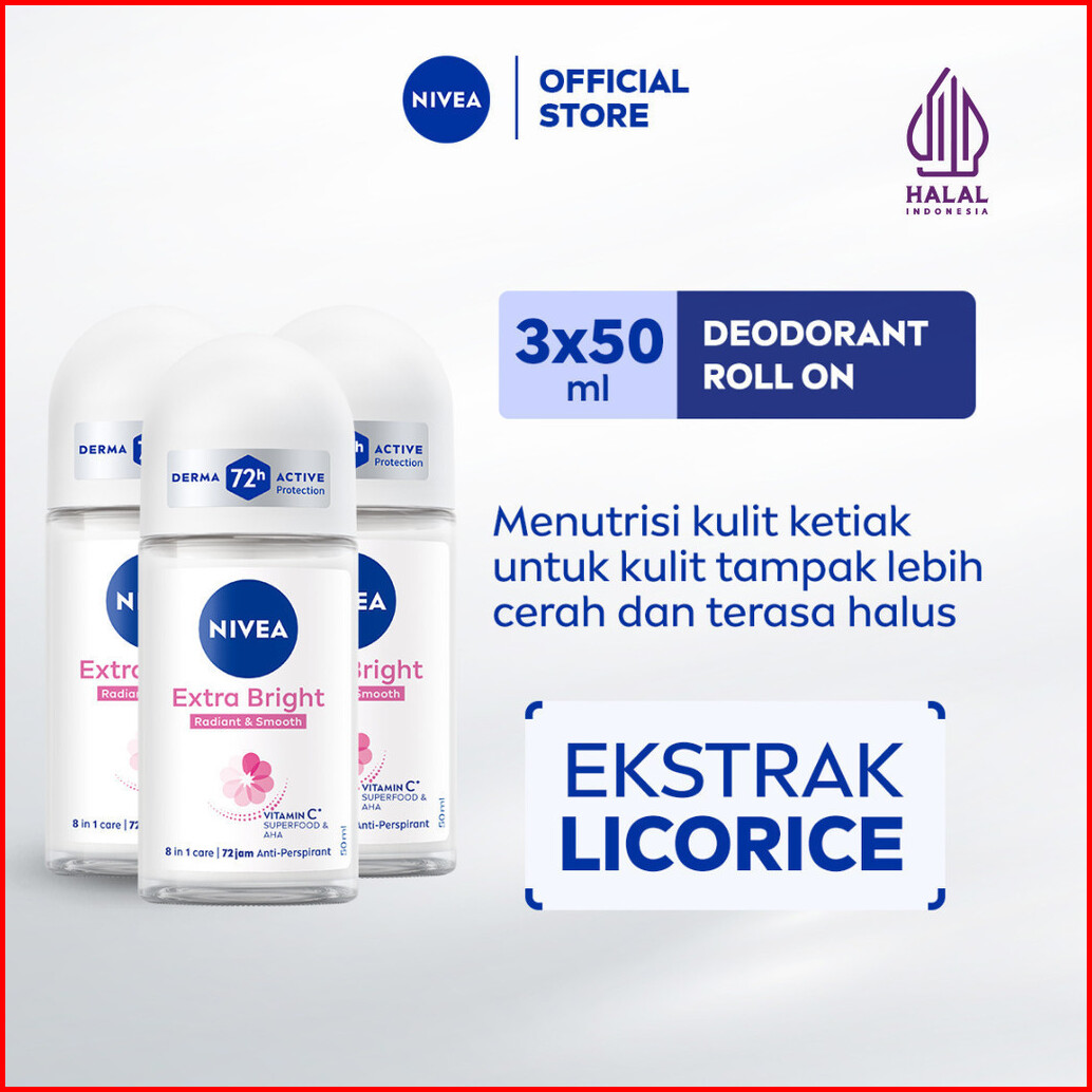 Paket Hemat Isi 3 Nivea Deodorant Roll On Extra Bright Radiant Smooth 50ml - Deodoran Wanita Mencerahkan Ketiak Brighten
