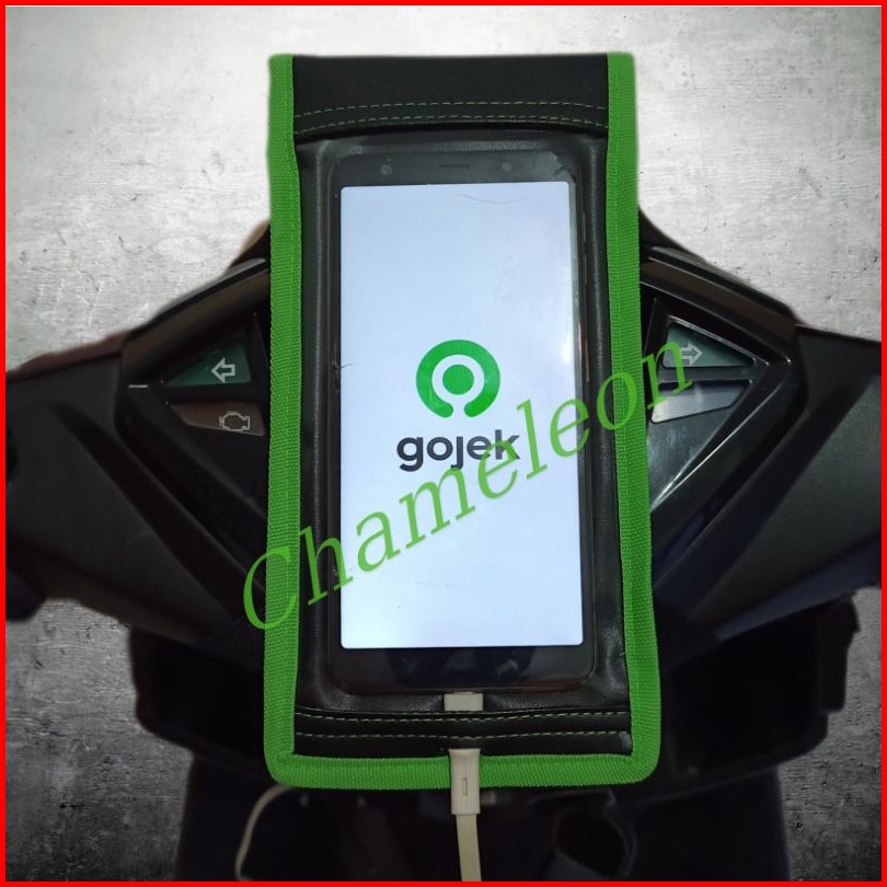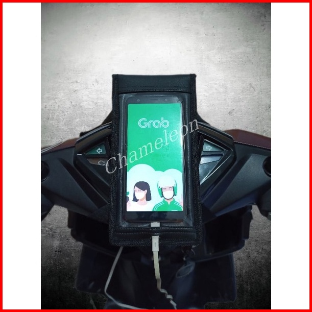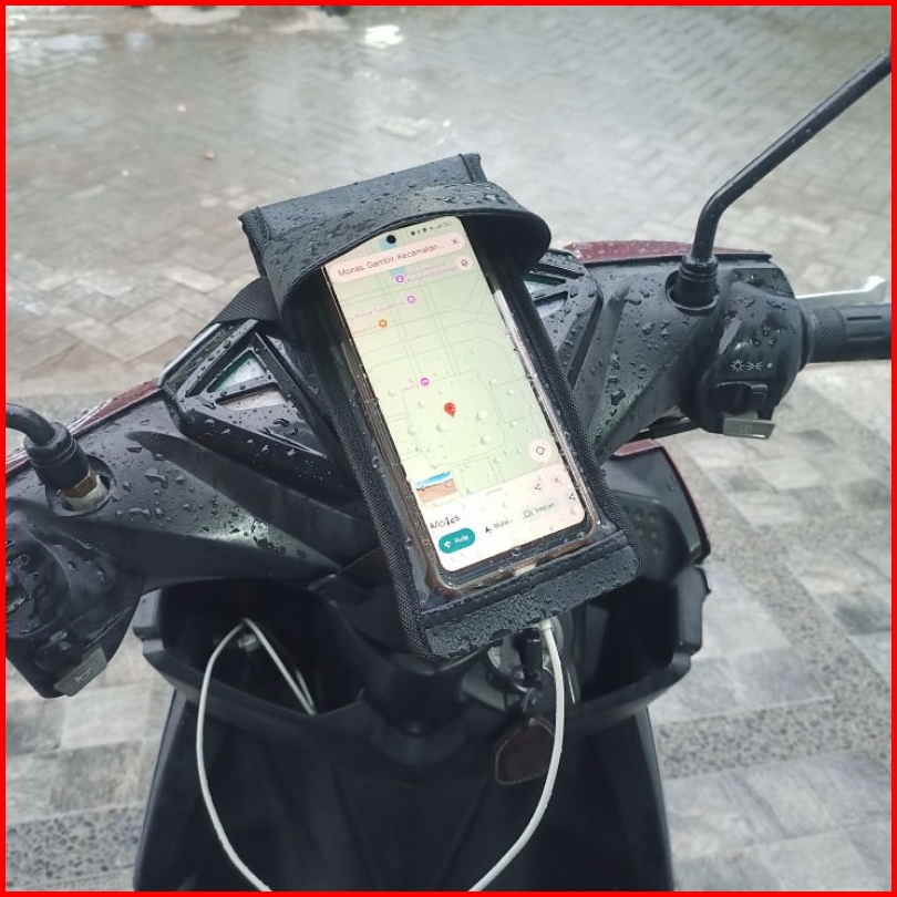 Holder Hp Motor Ada Lubang Cas Bahan Kulit Sintetis Anti Air
