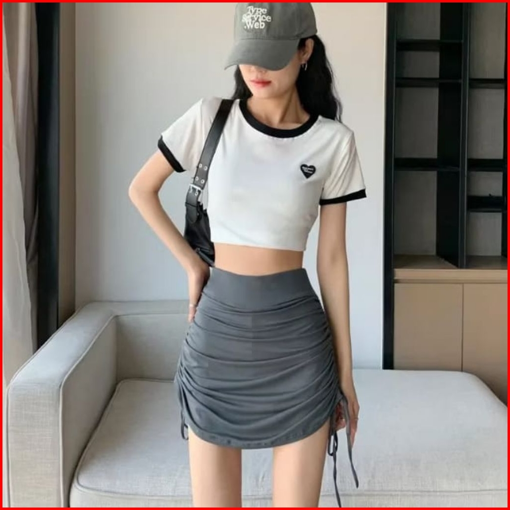 Rok Serut Pendek Mini Korea Style - Rok Mini Serutan Wanita Bb 40-90kg