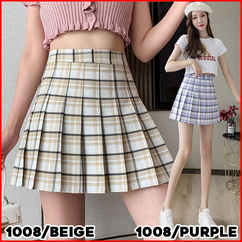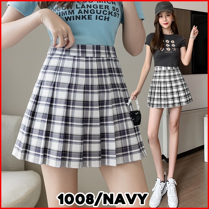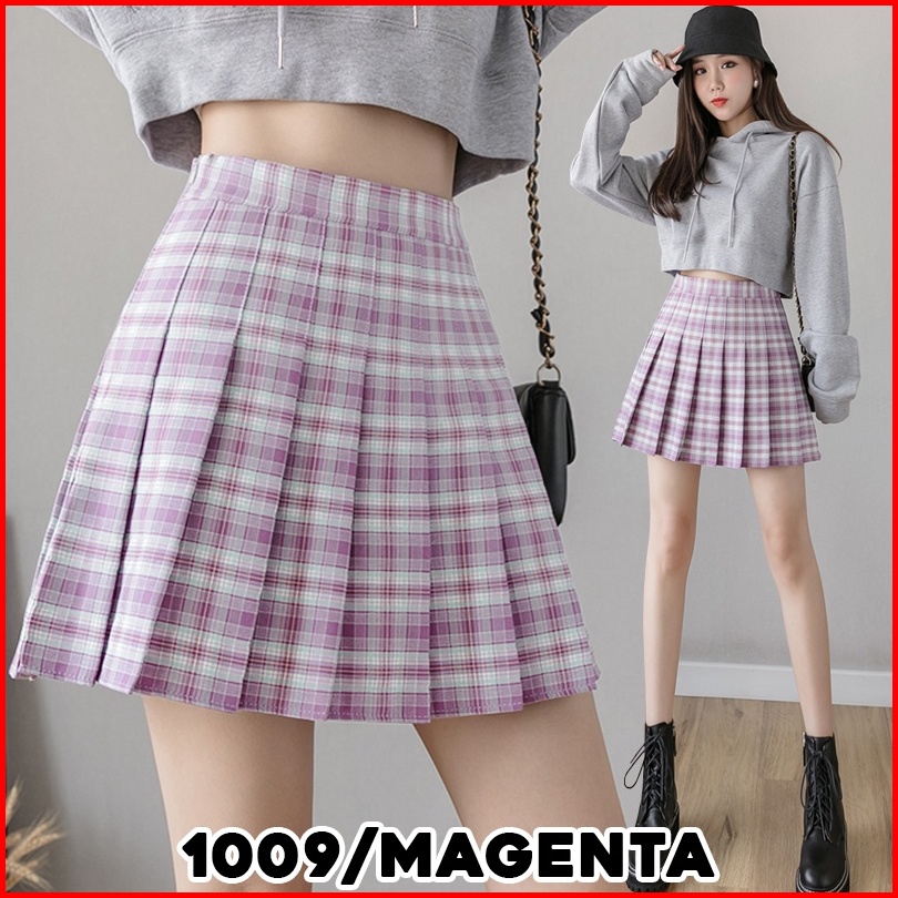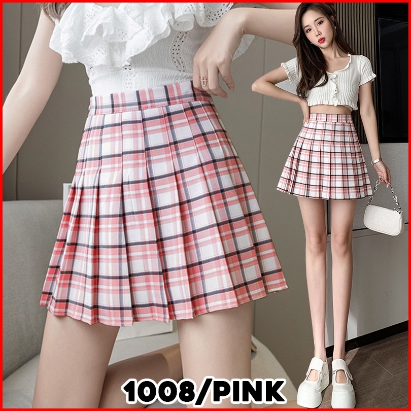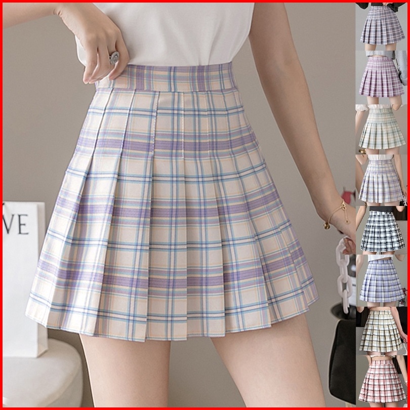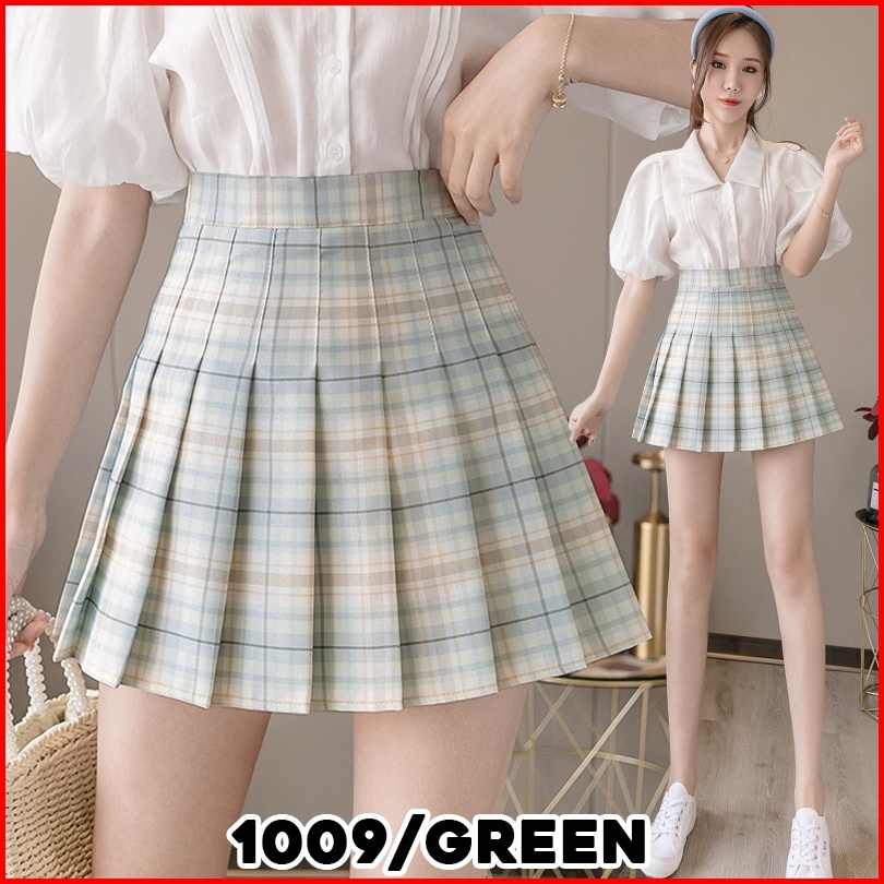 Karakorea 1009 Brain Girls Pleated Skirt Rok Mini Rok Kotak Kotak Rok Lipit Lisa Rok Korea Skirt Rok Golf Wanita Rok Ten