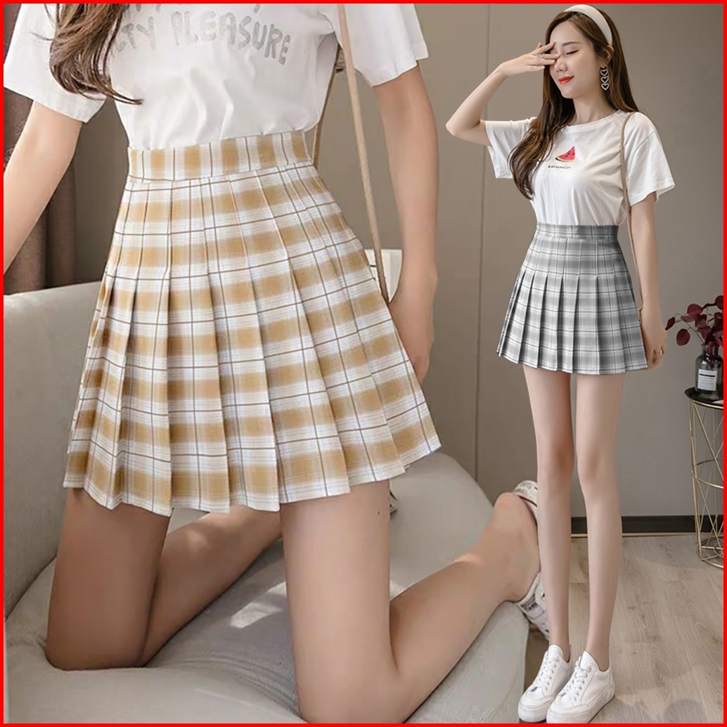 Karakorea 8606 Tennis Skirt Mini Skirt Rok Pendek Rok Tenis Rok Kotak Plaid Rok Lipit Lisa Rok Korea Skirt Rok Tennis Ro