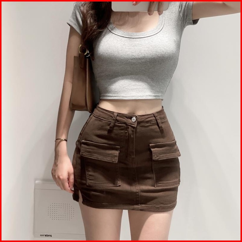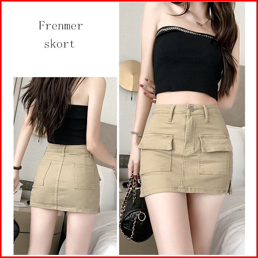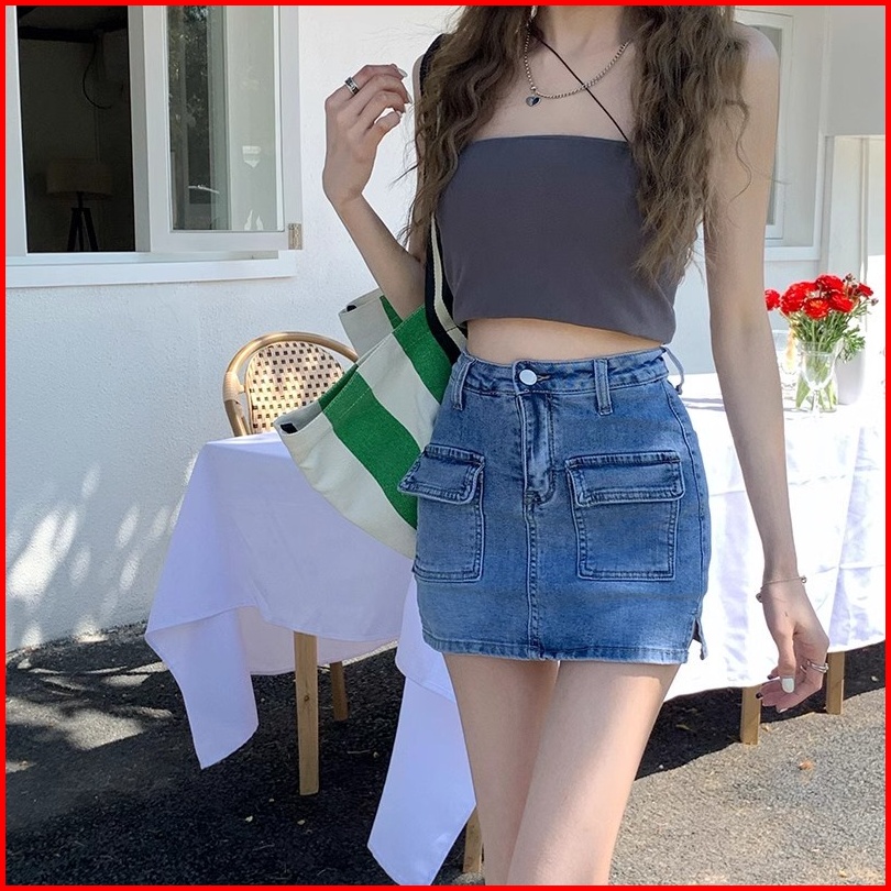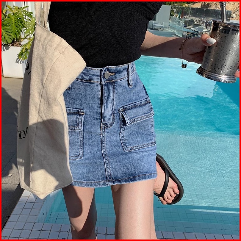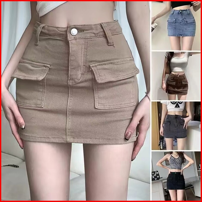 23-37 Rok Pendek Denim Tas Pinggul Pinggang Tinggi 5 Warna Seksi Gadis Seksi Ukuran Plus