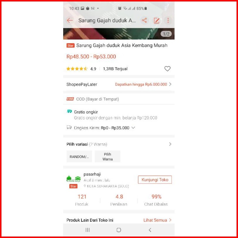 Random /Mix, Hitam, Biru Benhur, Kunyit, Maroon, Cokelat, Ungu, Orange, Biru Navy, hijau army, Hijau Tua, Biru denim, Merah C.Rawit, Mustard, Coktu, Kembang Nusantara, Kembang Ambarot, Kembang Prima