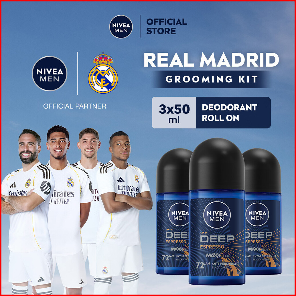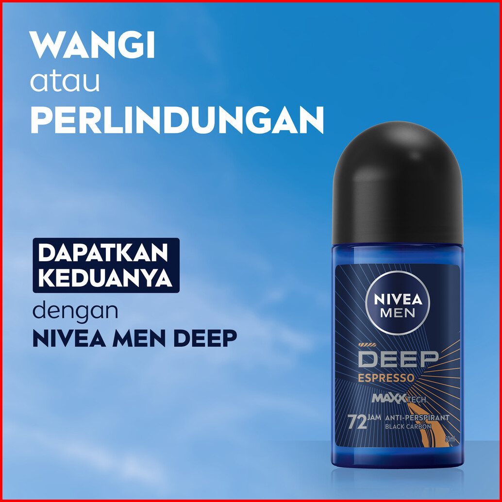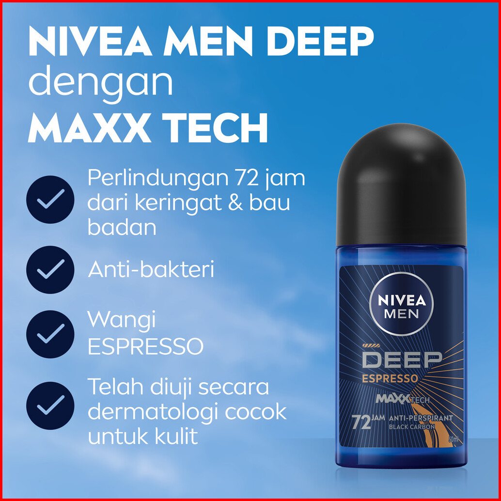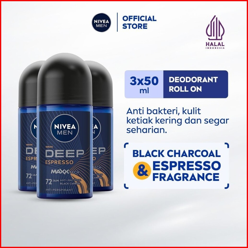 Paket Hemat Isi 3 Nivea Men Deodorant Roll On Deep Espresso 50ml - Deodoran Pria Melawan Bakteri Keringat Bau Badan Deng