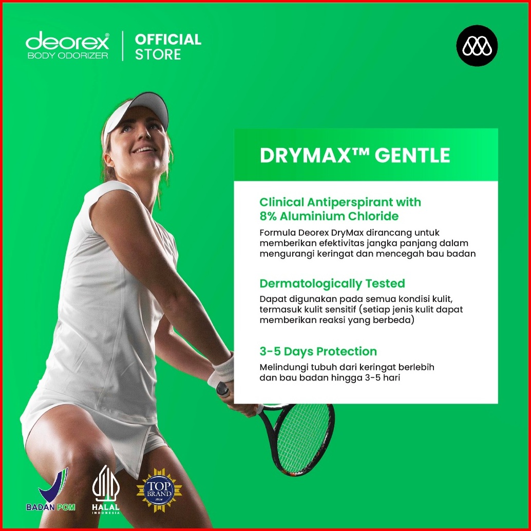 Deorex Drymax Orginal Gentle Extra Clinical Anti Perspirant Deodorant Roll On 30ml Solusi Keringat Berlebih Dan Bau Bada
