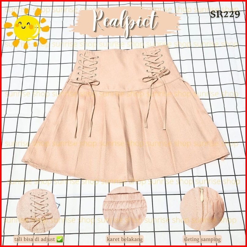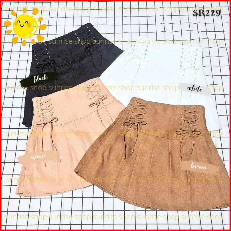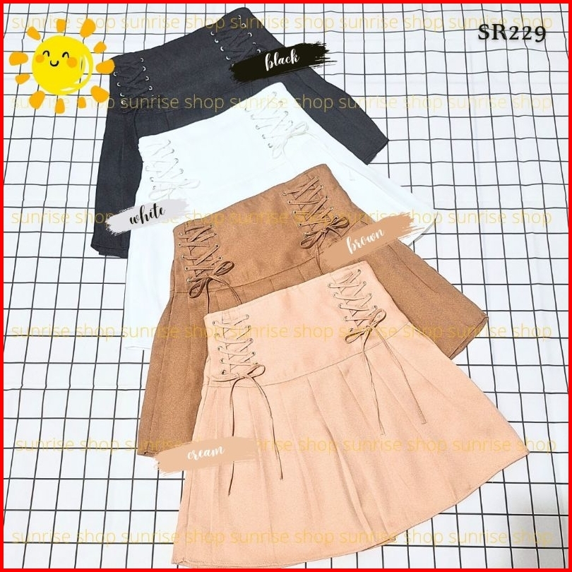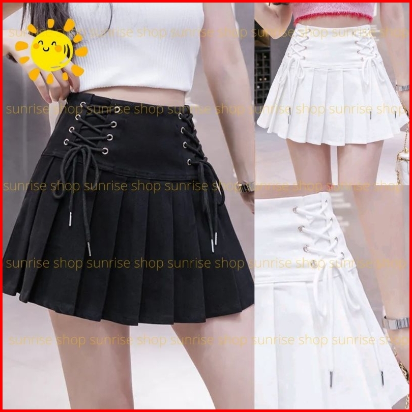 Sr229-double Lace Up Pleated Mini A-line Skirt
