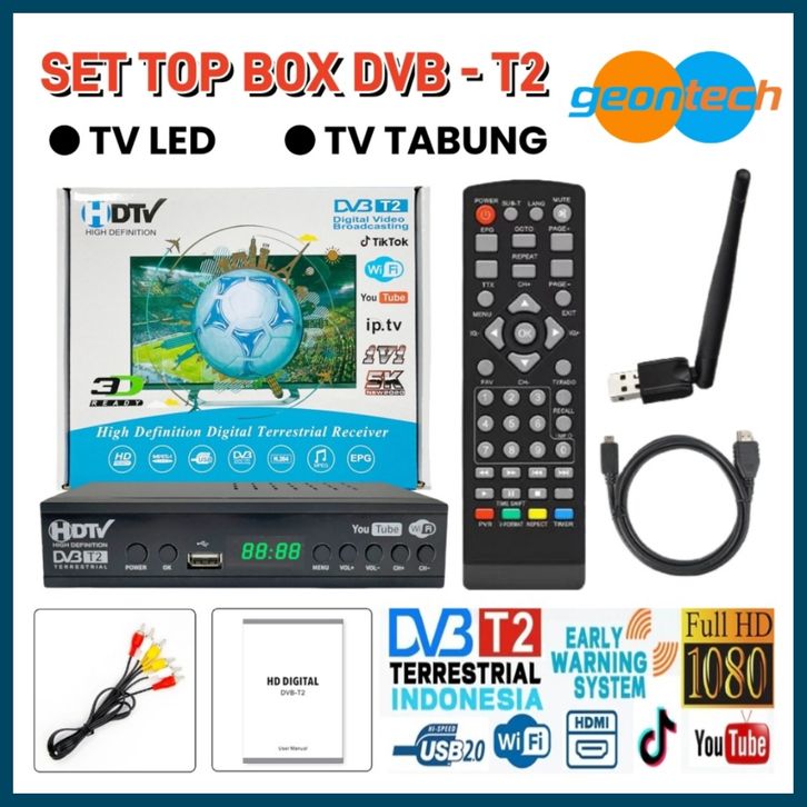 Set Top Box DVB-T2 TV Digital Receiver Penerima Siaran Full HD/ STB Wifi Bisa Youtube