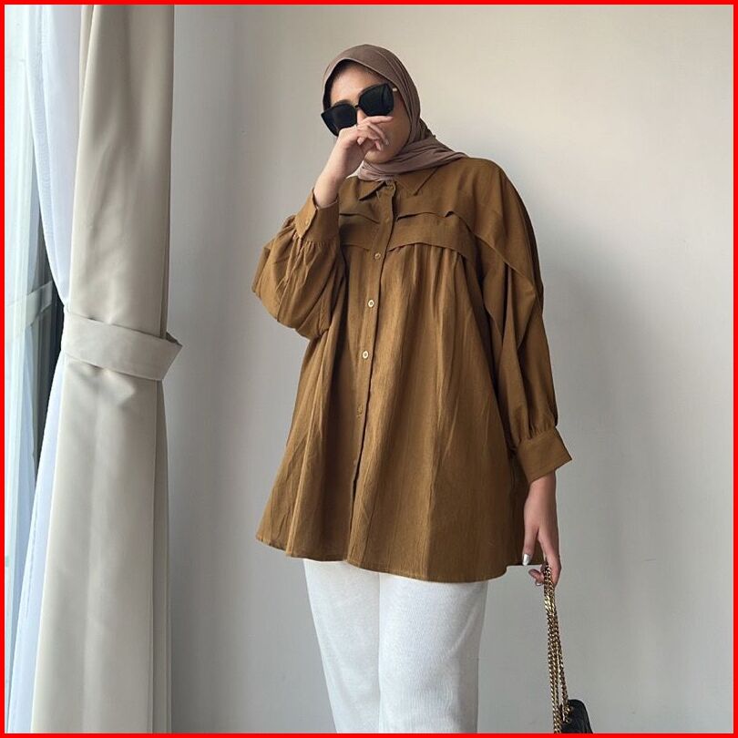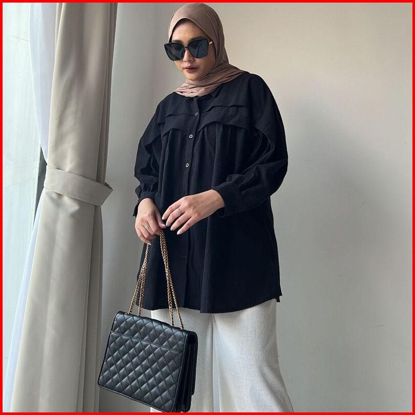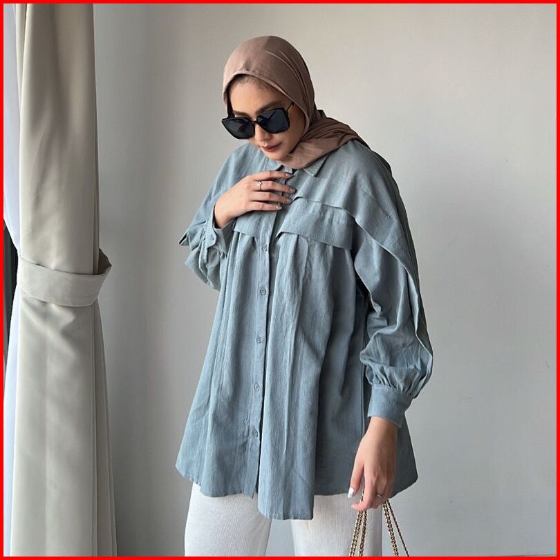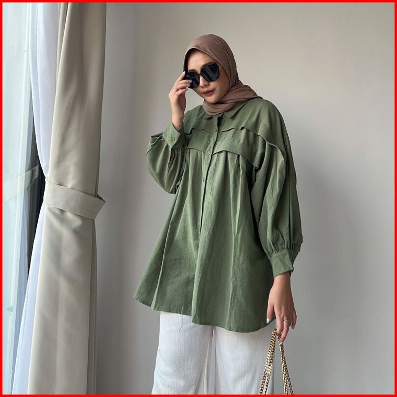 Rasya Linen Shirt - Kemeja Atasan Wanita - Blouse Kemeja Wanita - Kemeja Rempel