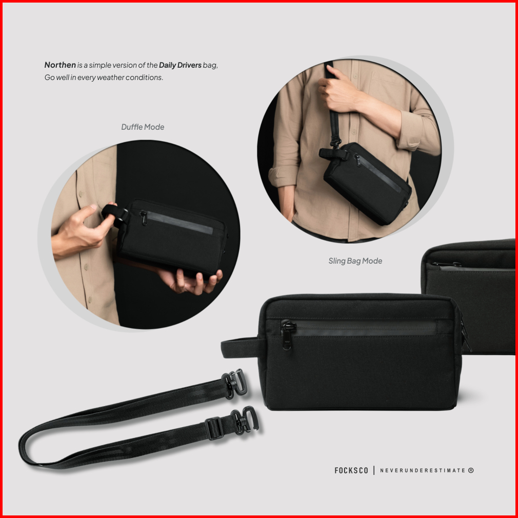 Focksco Northen Black Tas Selempang Pria Two In One Sling Bag Duffel Mode
