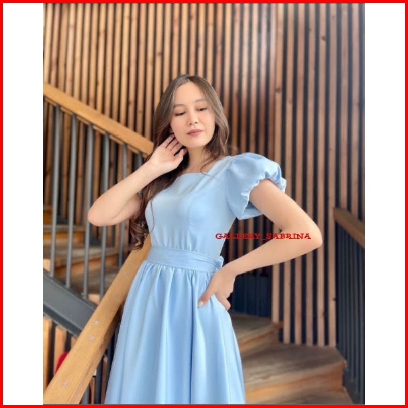 Dress Midi Tangan Balon Puffy Tiara Korean Style