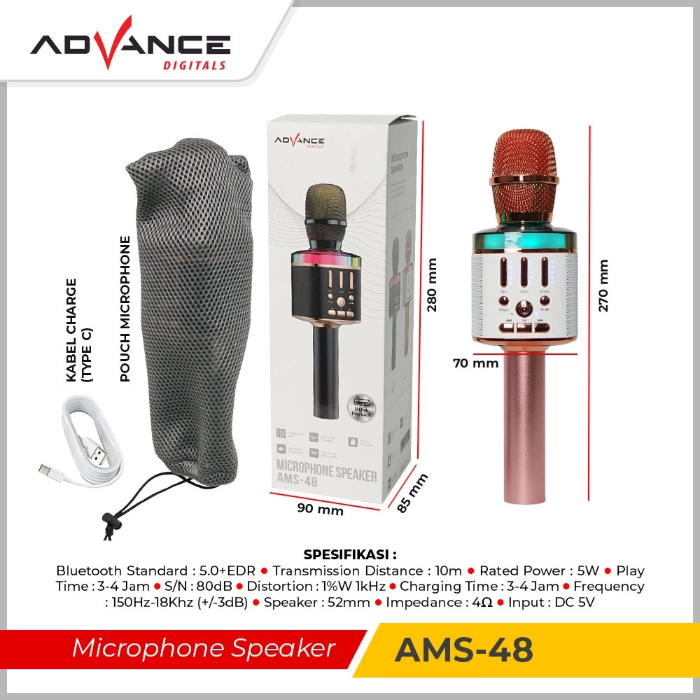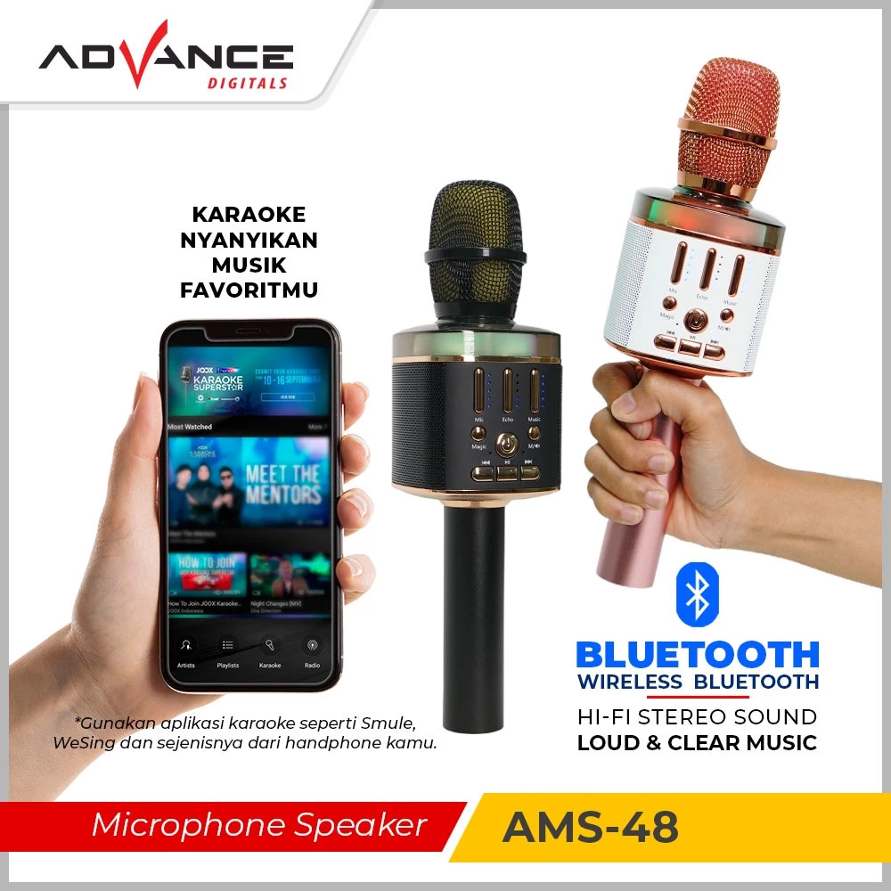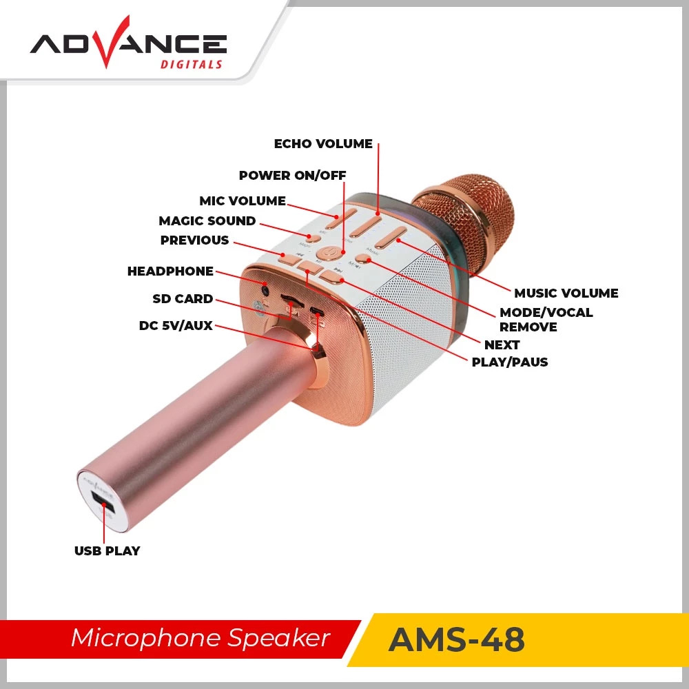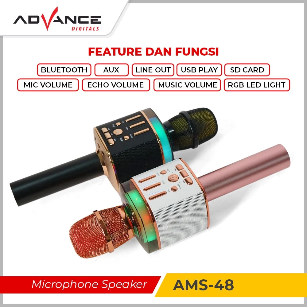 Advance AMS-48 Mic Karaoke Wireless Speaker Bluetooth 2in1 Genggam Sing Record Portable Player