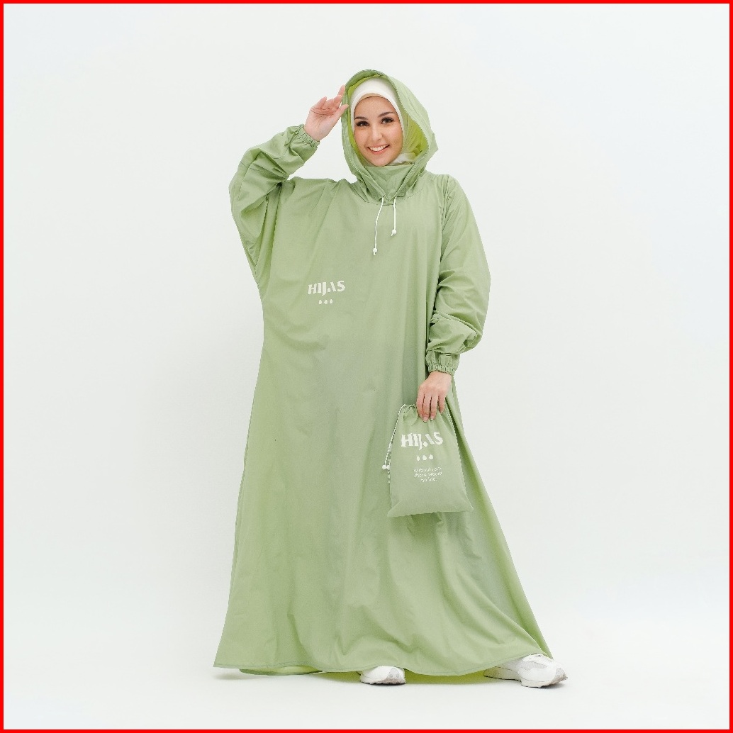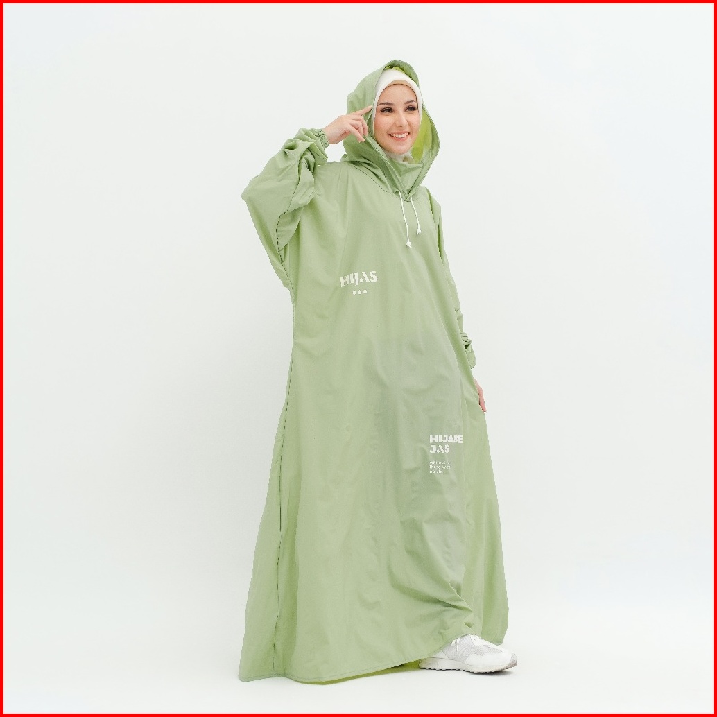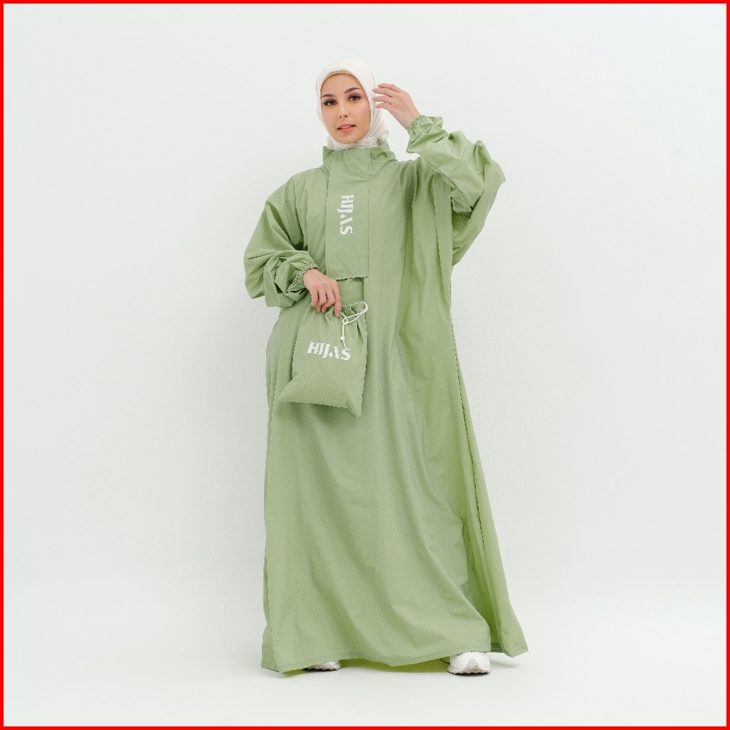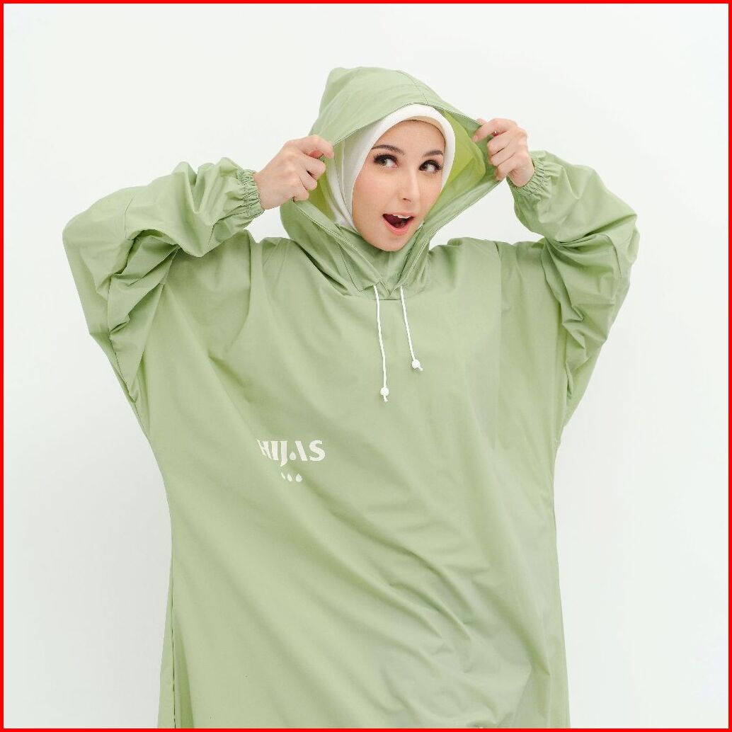 Hijasku Jas Hujan Wanita Gamis Syar I Jumbo Pastel Matcha Pvc Tebal Anti Rembes