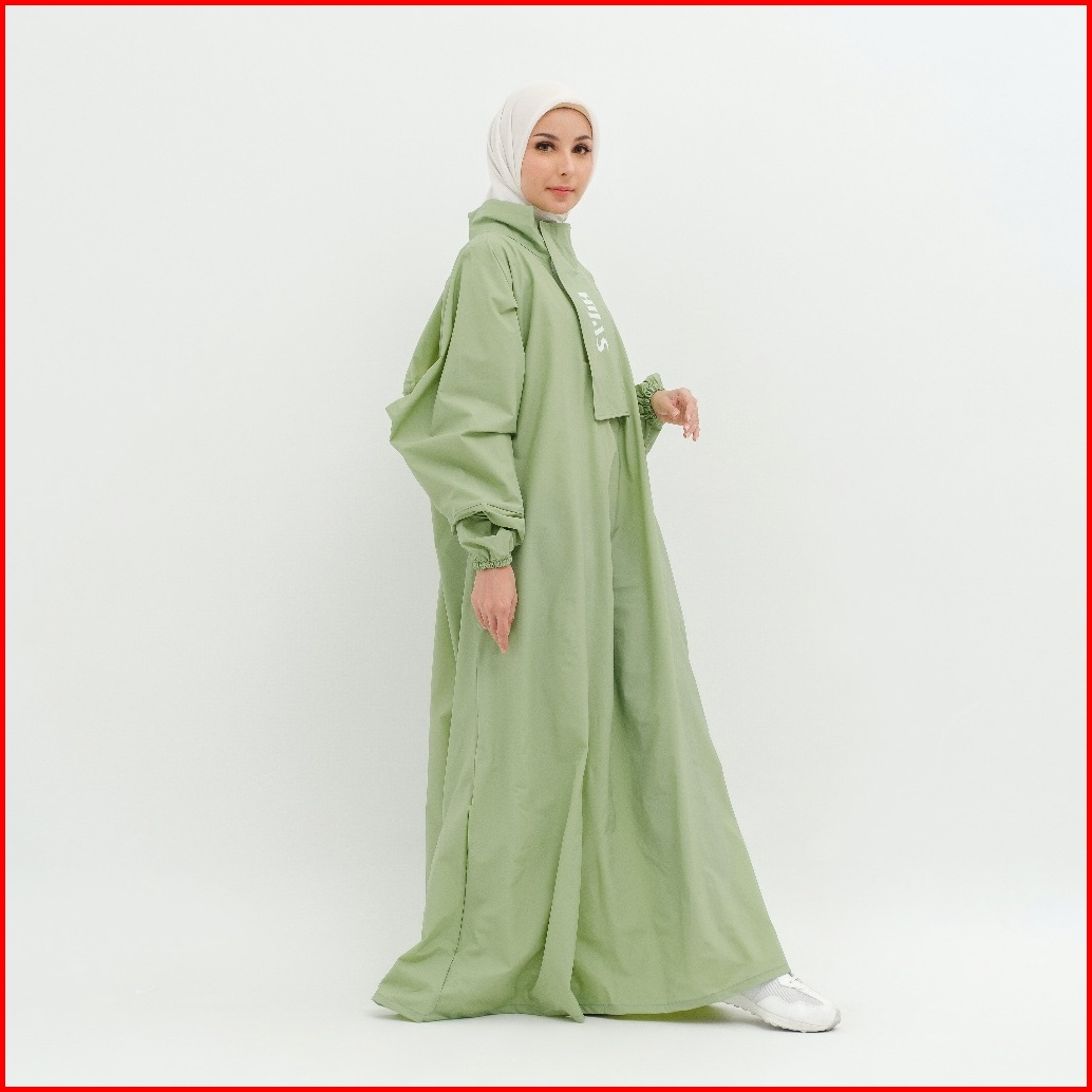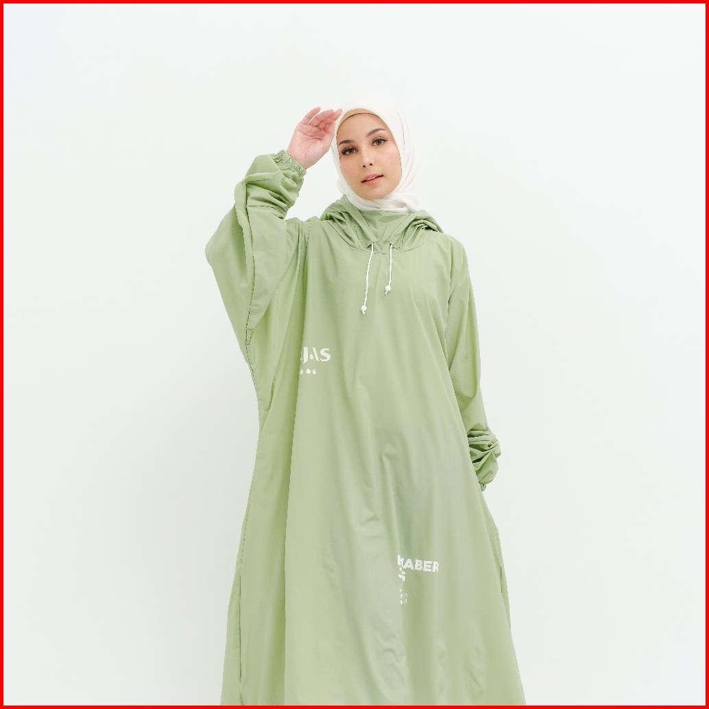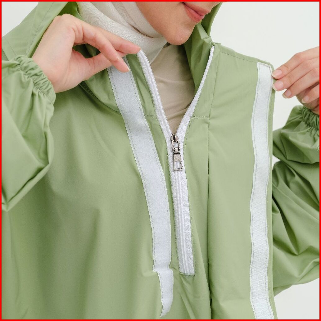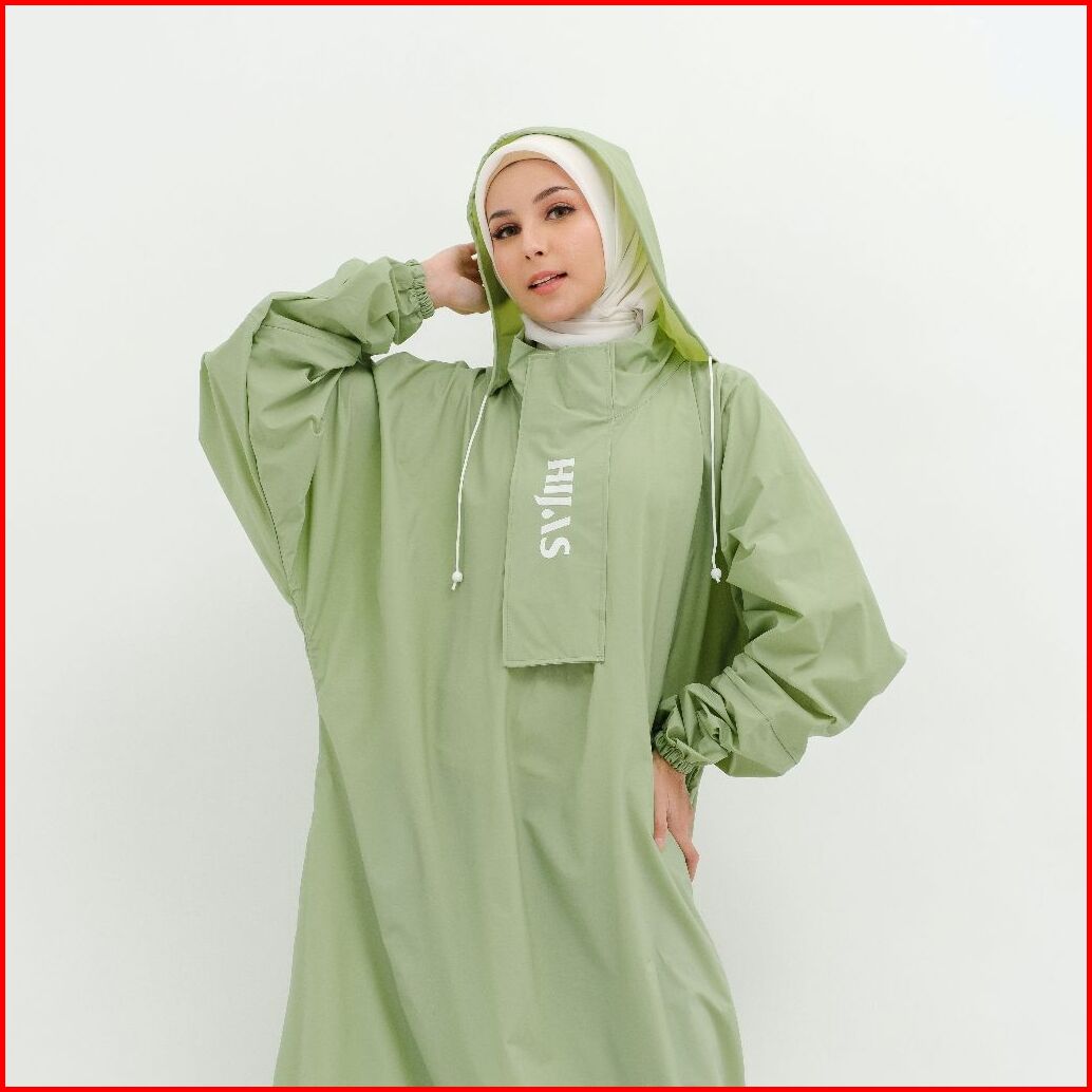 Hijasku Jas Hujan Wanita Gamis Syar I Jumbo Pastel Matcha Pvc Tebal Anti Rembes