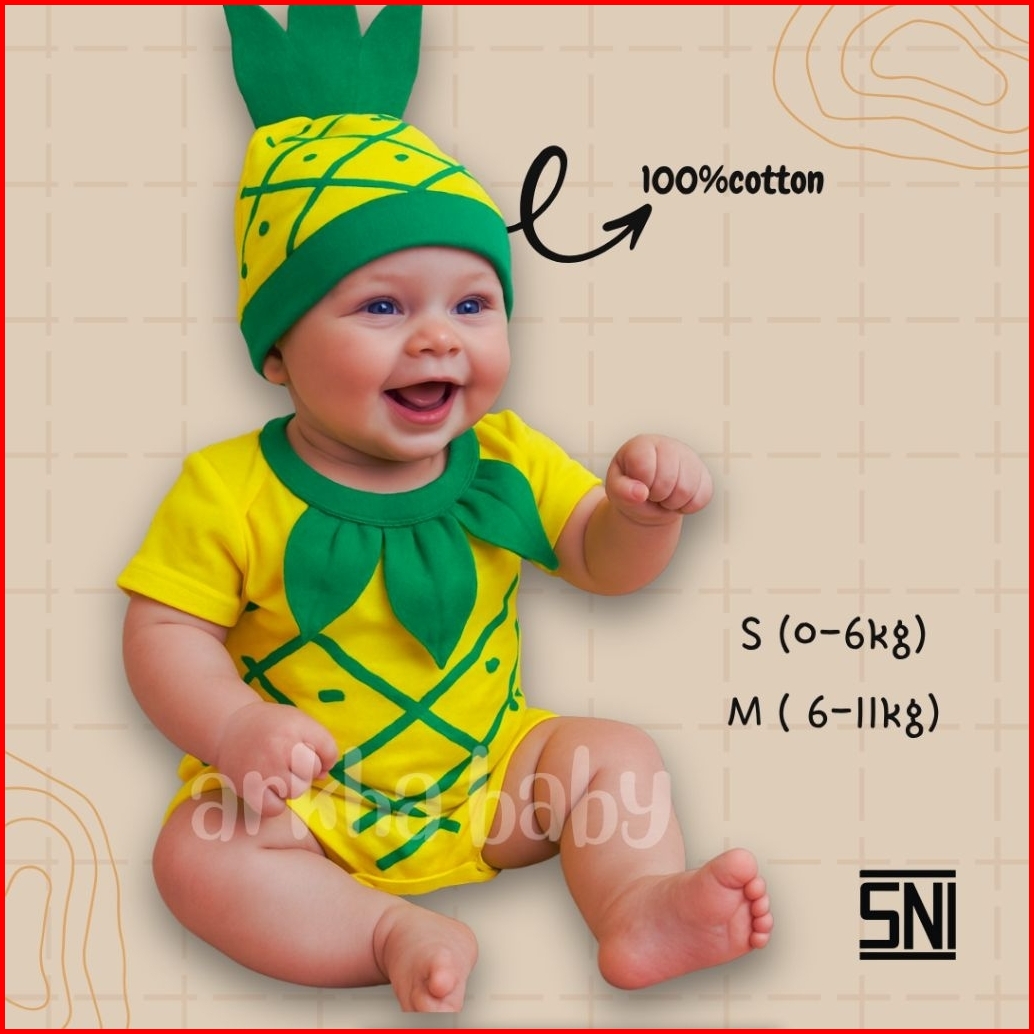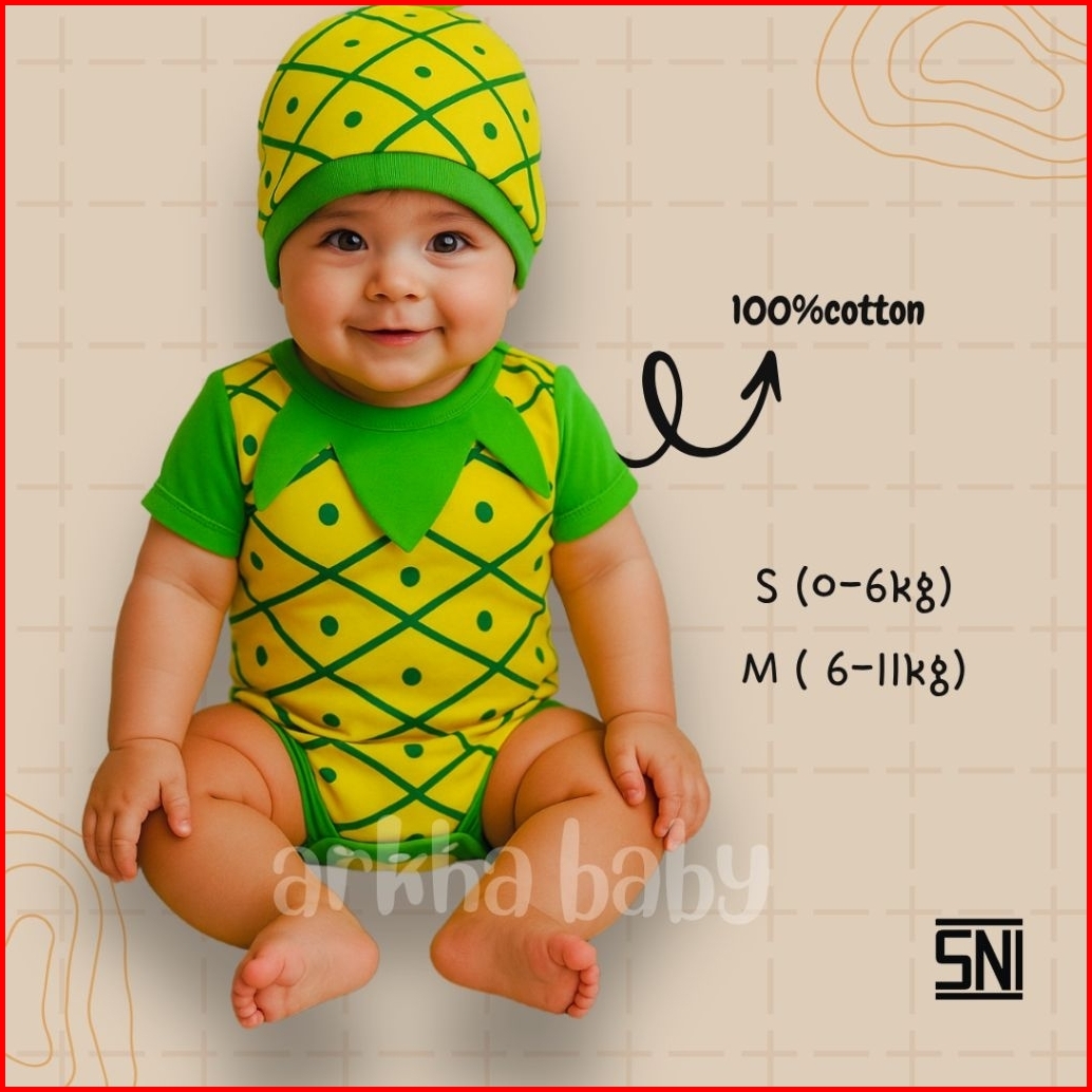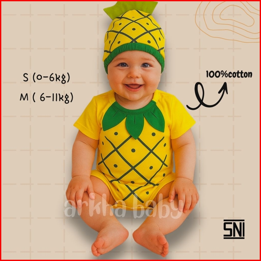 Jumper Bayi Baju Bayi Kostum Bayi Motif Nanas Jumpsuit Baby Pineaepple