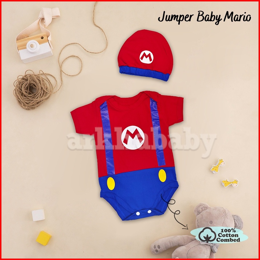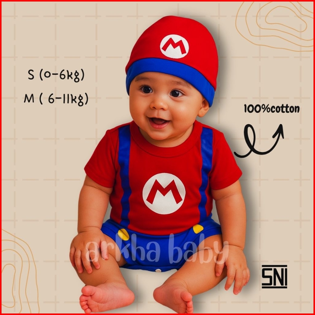 Baju Bayi Kostum Bayi Jumper Bayi Karakter Mario Jumpsut Baby Bahan Katun Sni