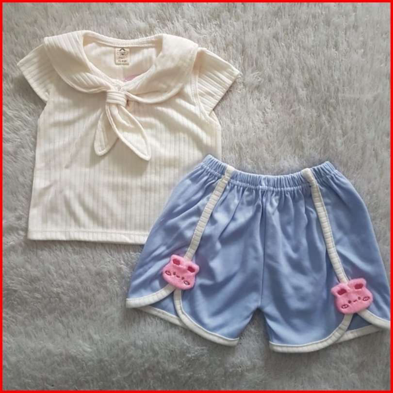 Baju Bayi Setelan Kerah Sailor Bunny Size 3-9 Bln