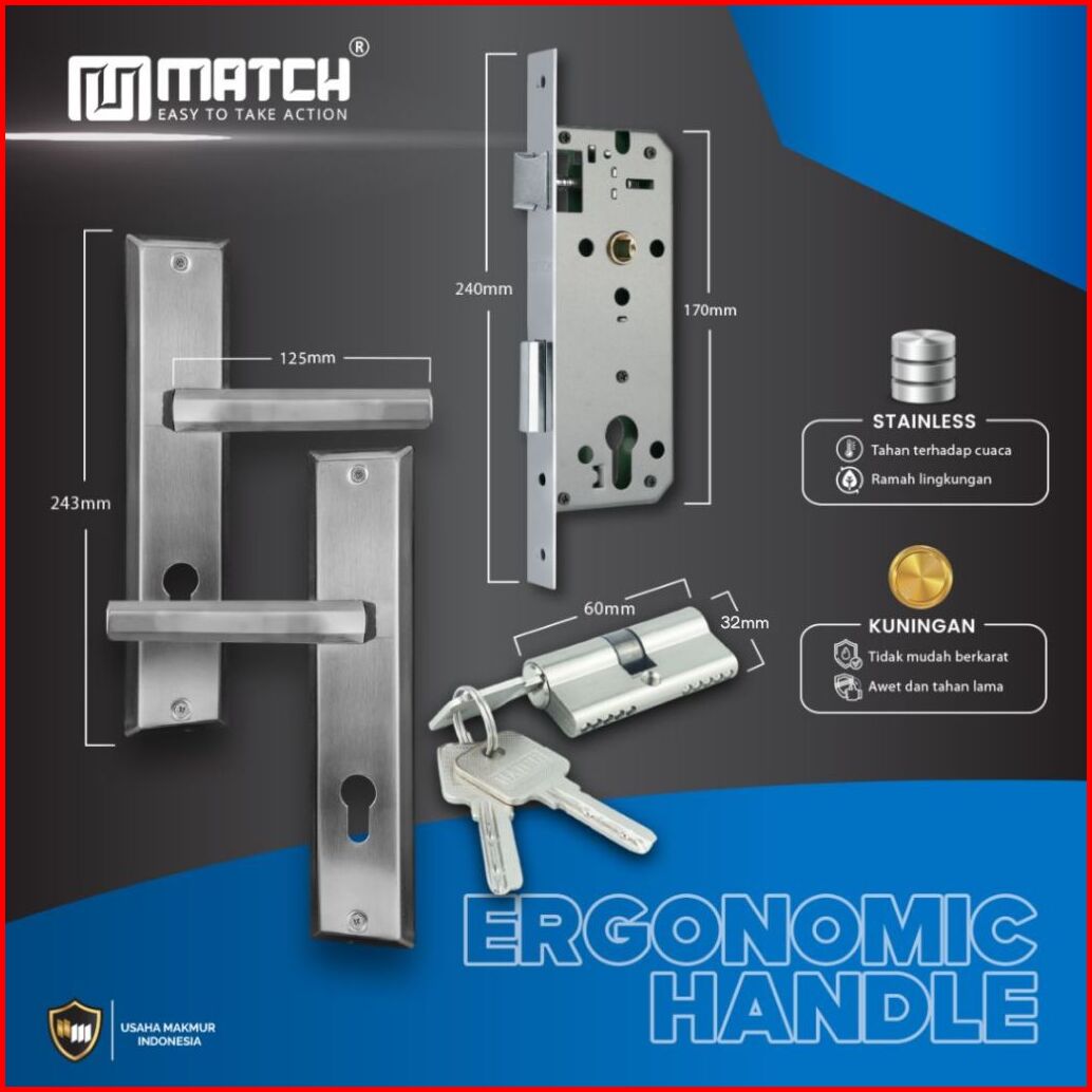 Match Kunci Besar 25 Cm Komplit Kunci Rumah Set Handle Besar Stainless Selot Pintu Set Ml 89