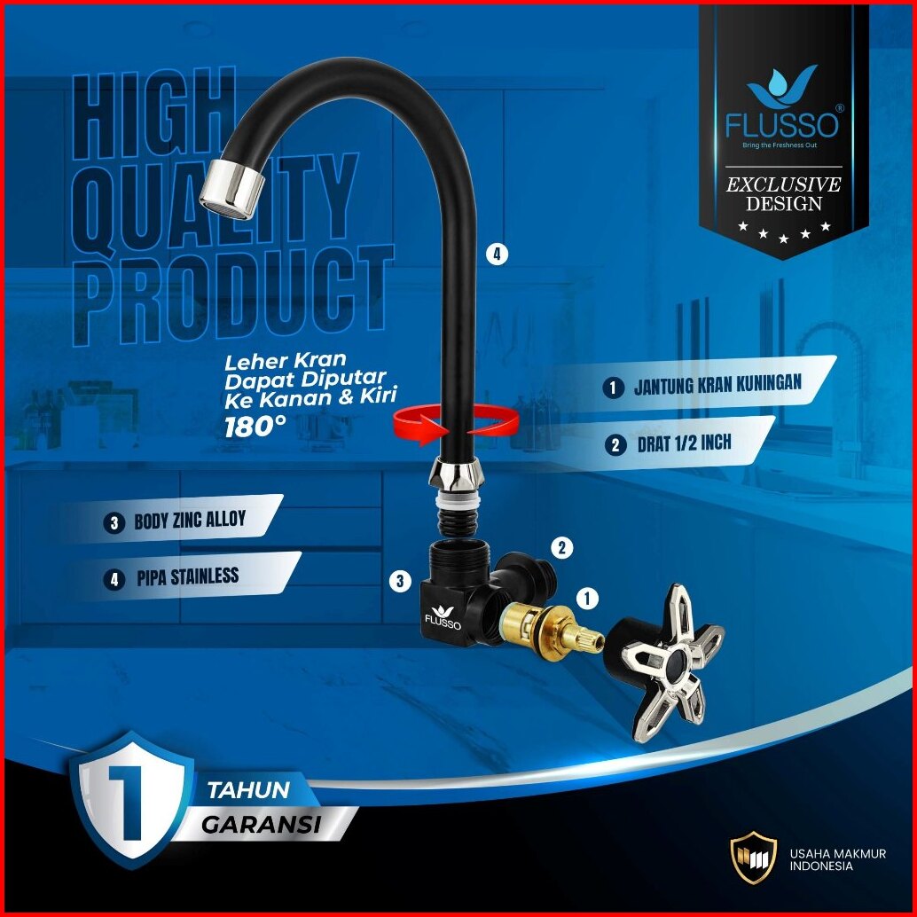 Flusso Kran Angsa Cuci Piring Stainless Black Original Garansi 1 Tahun 2170 2189