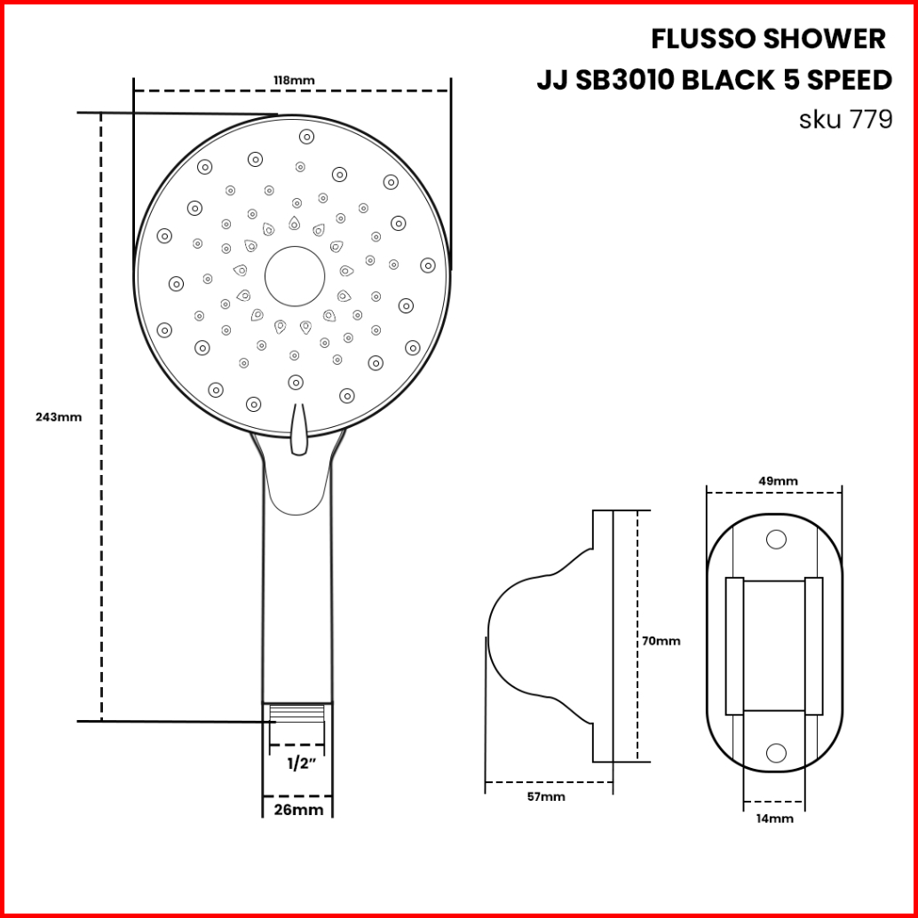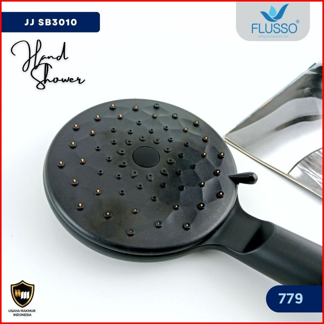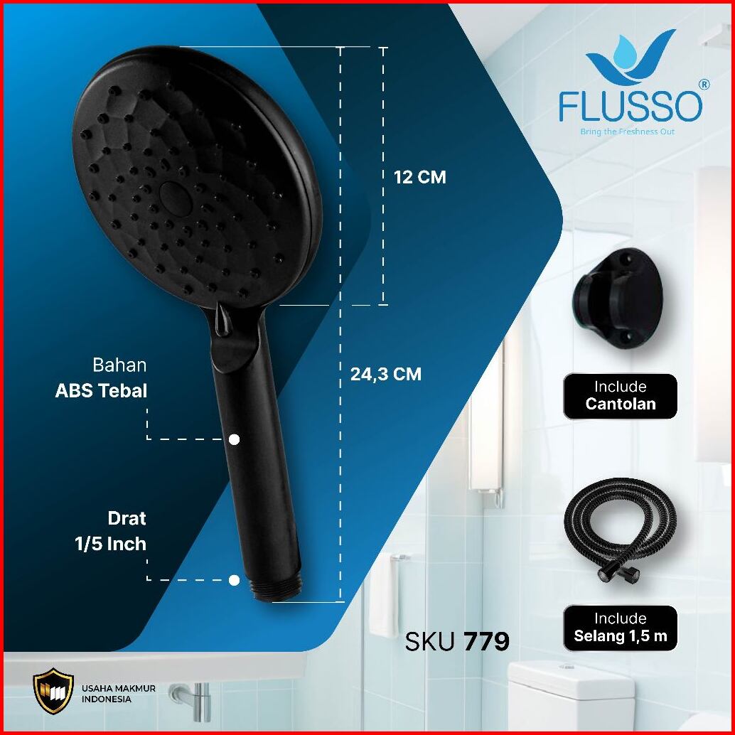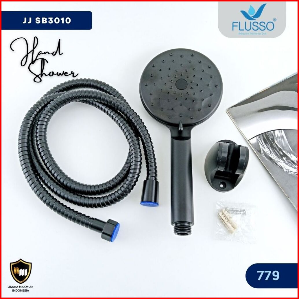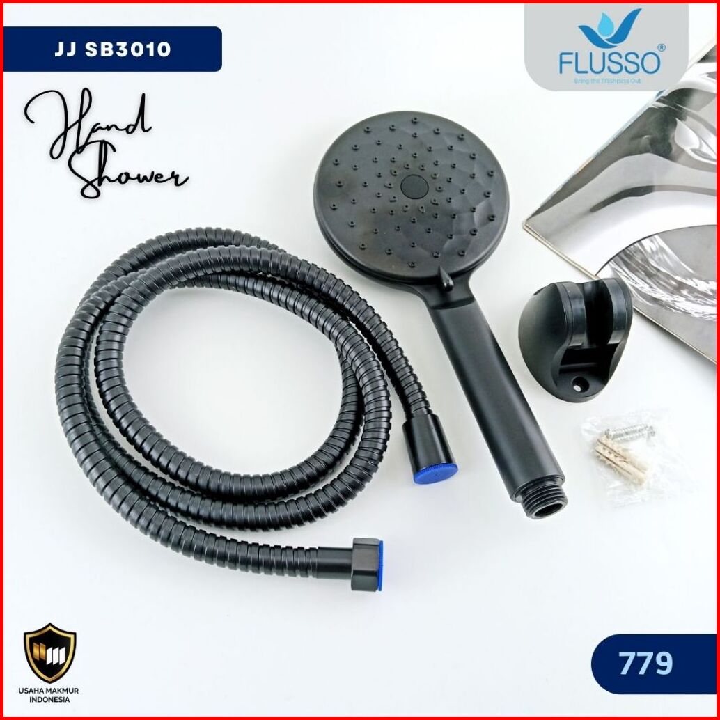 Flusso Shower Black 5 Speed Paket Hemat Hand Shower Braket Shower System Selang 150cm 779