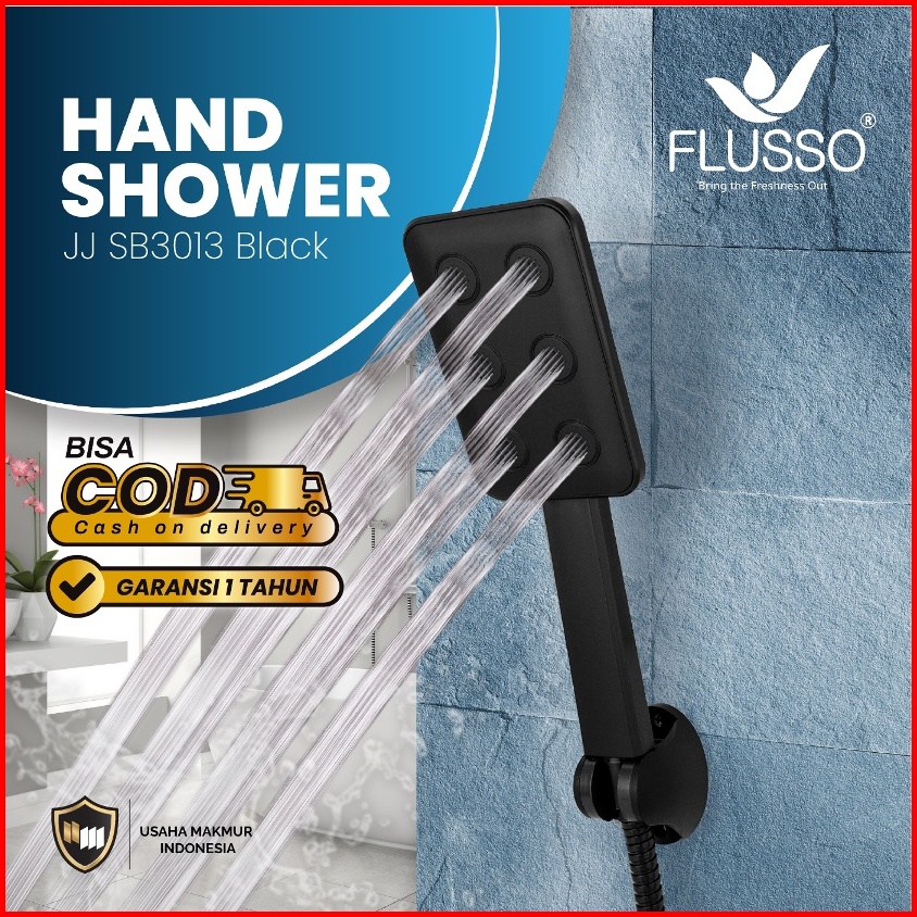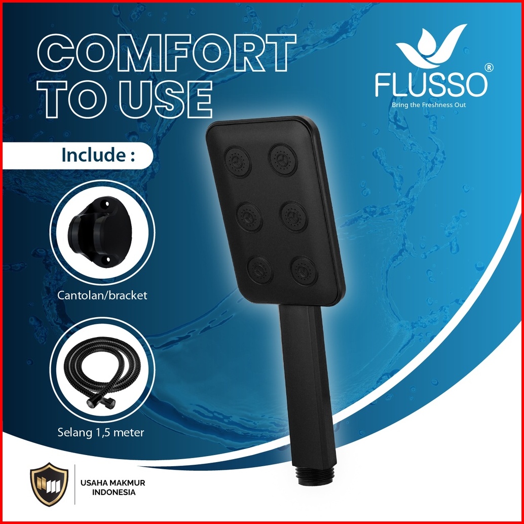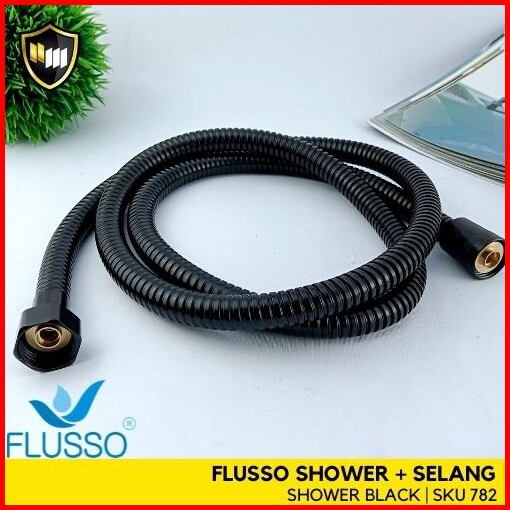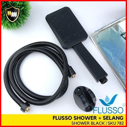 Flusso Shower Black Paket Hemat Hand Shower Braket Shower System Selang 150cm 782