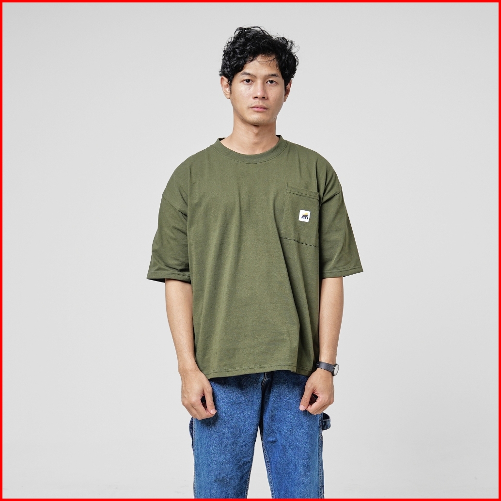 House Of Smith Kaos Boxy Pria - Pocket Green Army Boxy Heavyweights Tshirt 16s - Boxy T Shirt