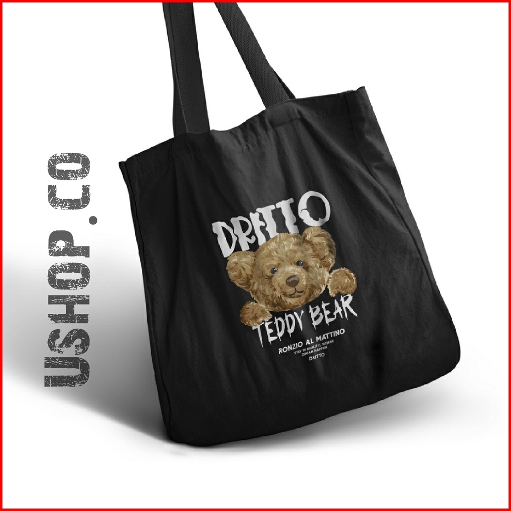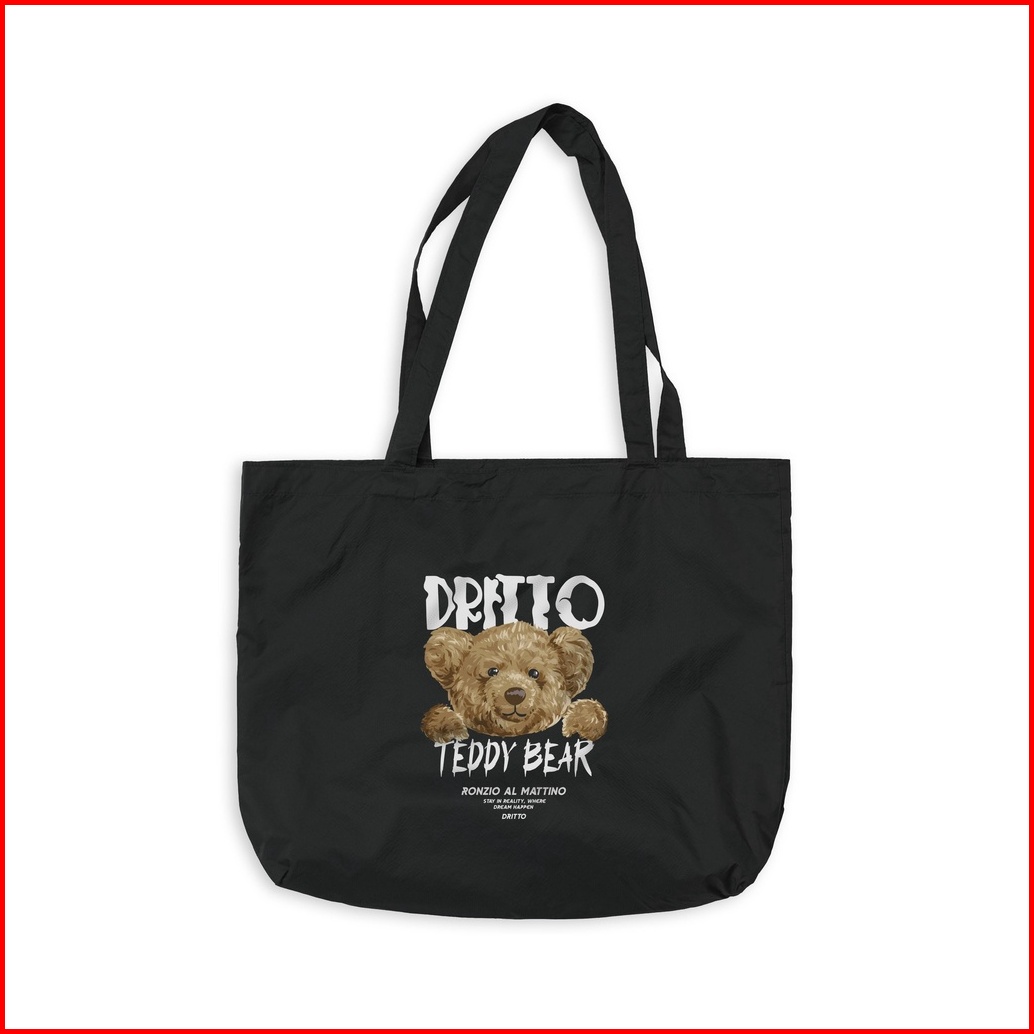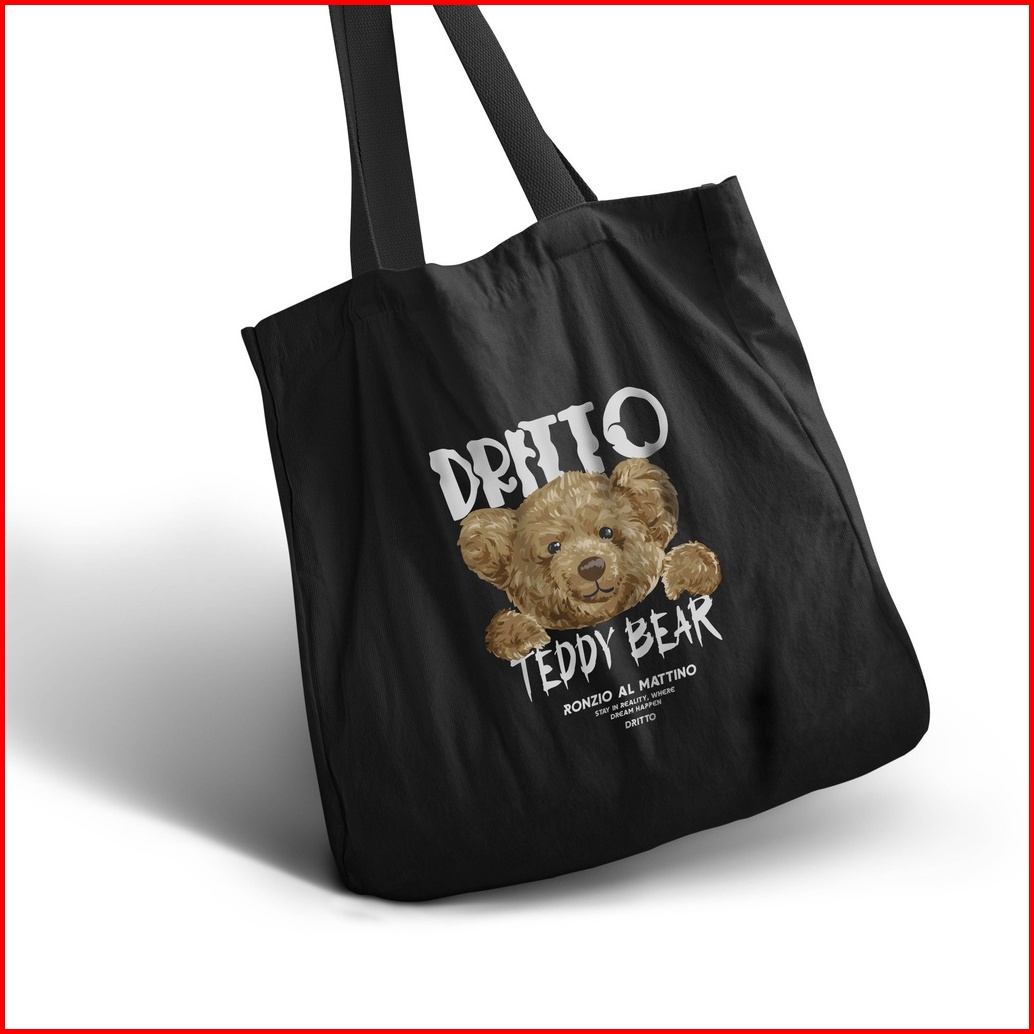 Totebag Kanvas Drt - Tote Bag Unisex Teddy Bear - Hitam