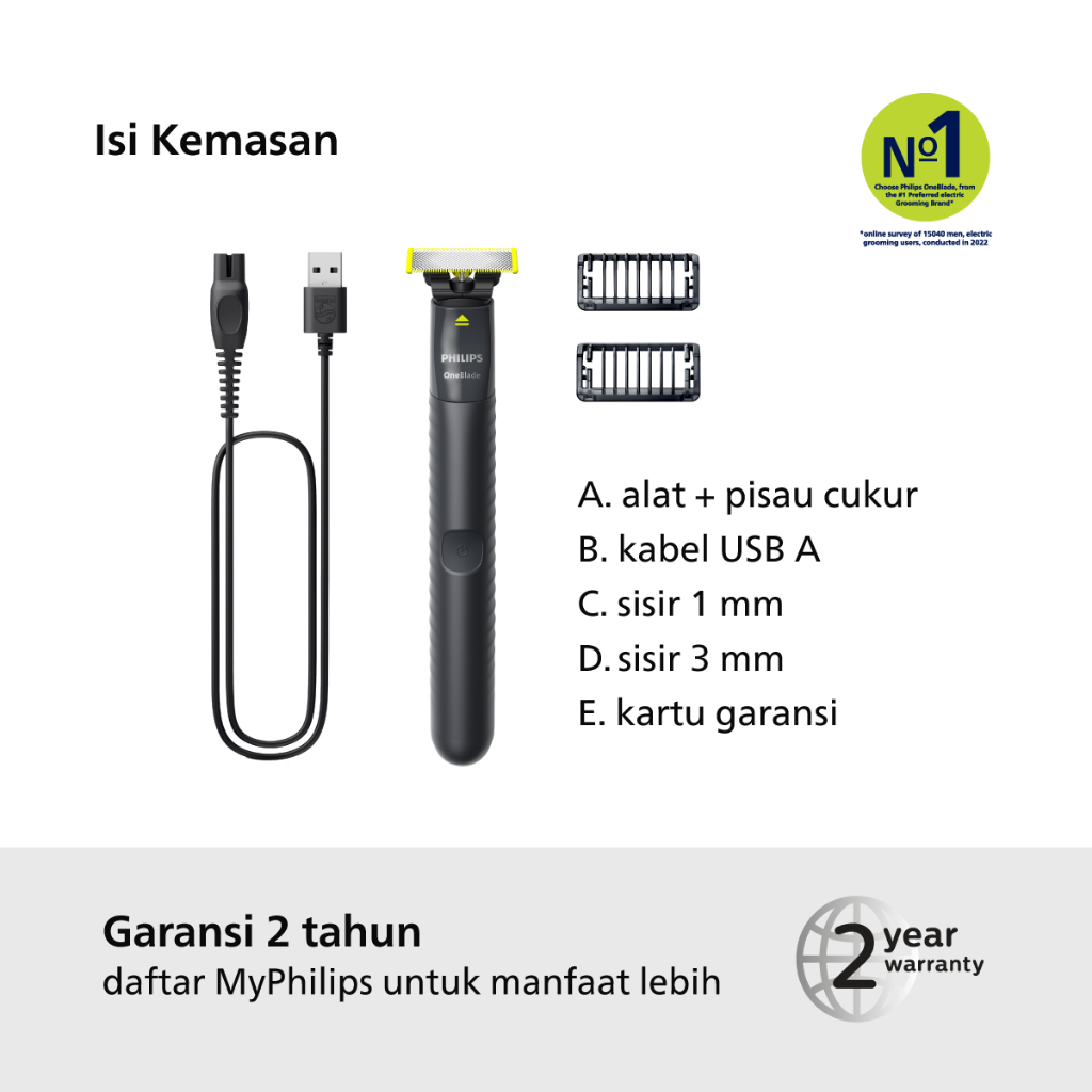 PHILIPS ONEBLADE ALAT CUKUR ELECTRIC HYBRID PRIA CUKUR DAN TATA TANPA LUKA BARET