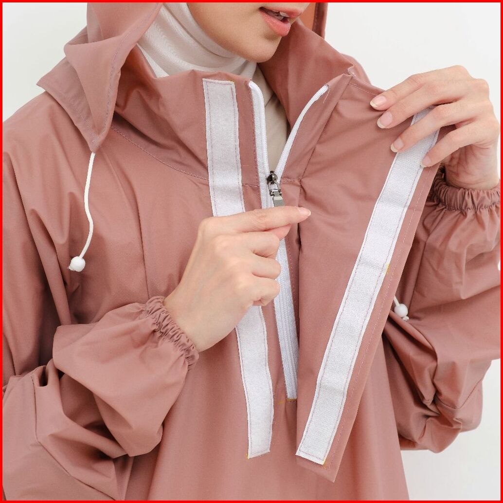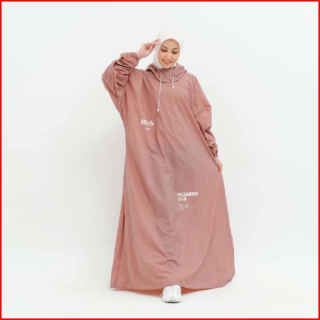 Hijasku Jas Hujan Wanita Gamis Syar I Jumbo Pastel Dusty Pink Pvc Tebal