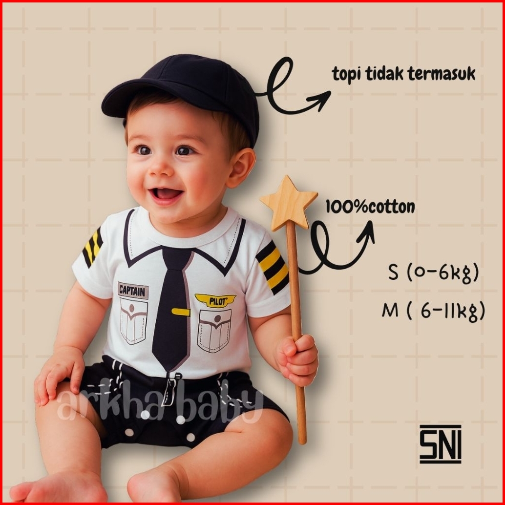 Romper Bayi Baju Bayi Motif Pilot Romper Bayi Bahan Katun Sni