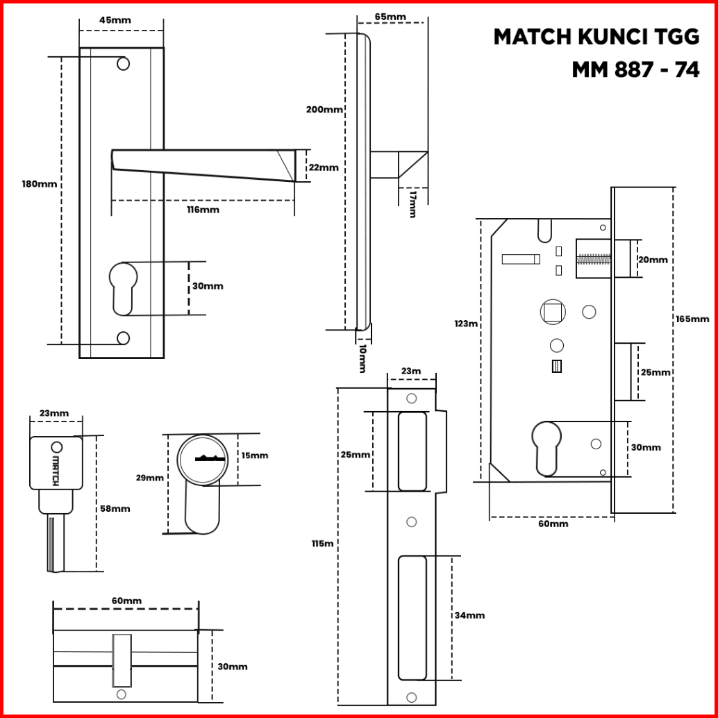 Match Set Kunci Pintu Rumah Tanggung Handle Pintu Rumah Ukuran 20cm Silver Mm74 985 986 987