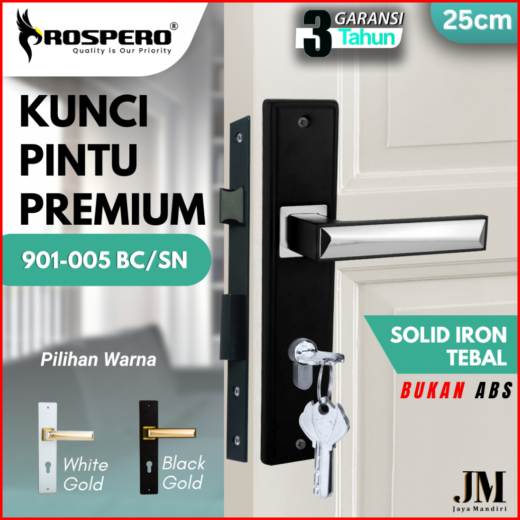 Prospero Kunci Pintu Rumah Besar 25cm Handle Pintu Premium Mewah 901-005 Black Silver 956