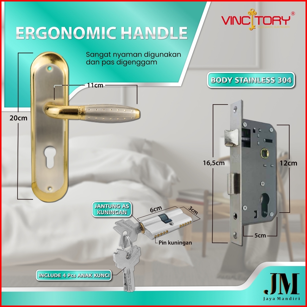 Vincitory Kunci Pintu Rumah Tanggung 20 Cm Handle Pintu Paket Komplit Body Dan Silinder Hm90 261