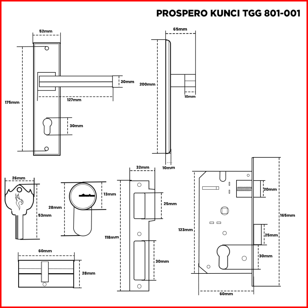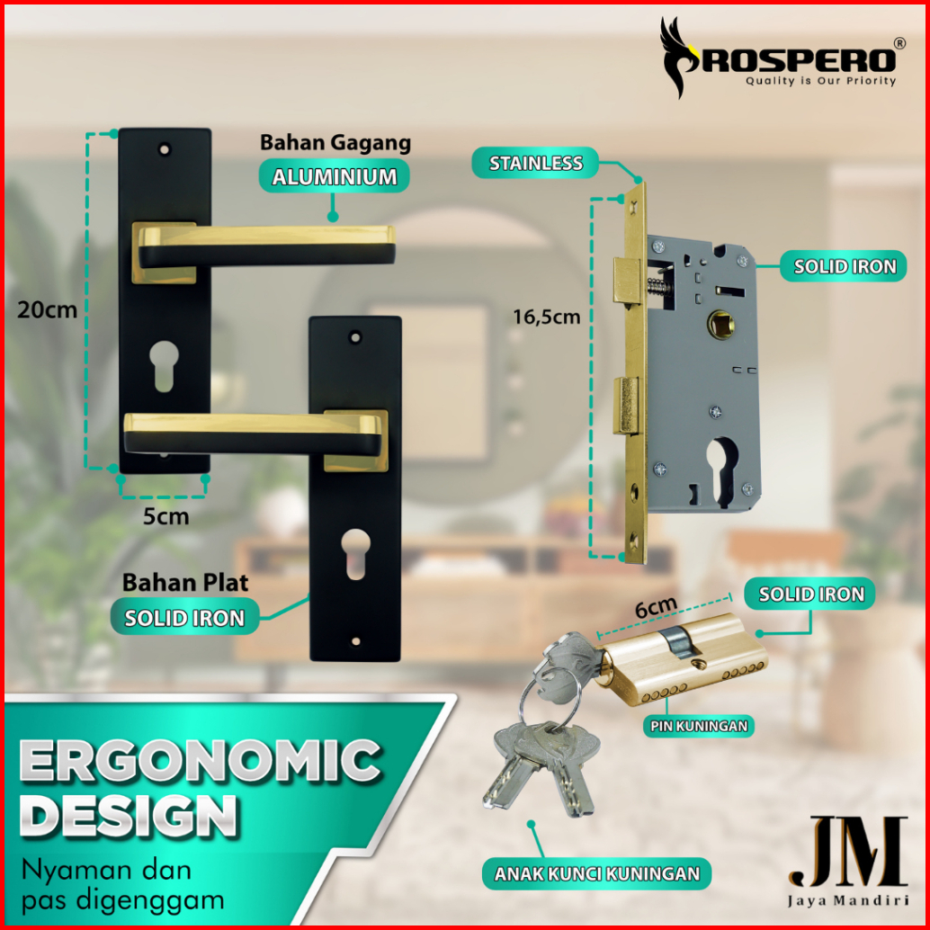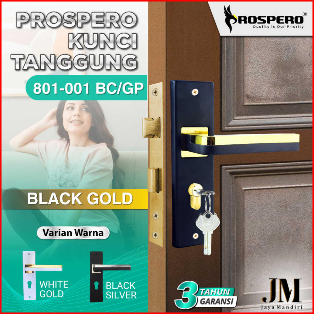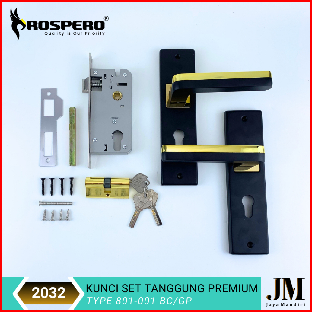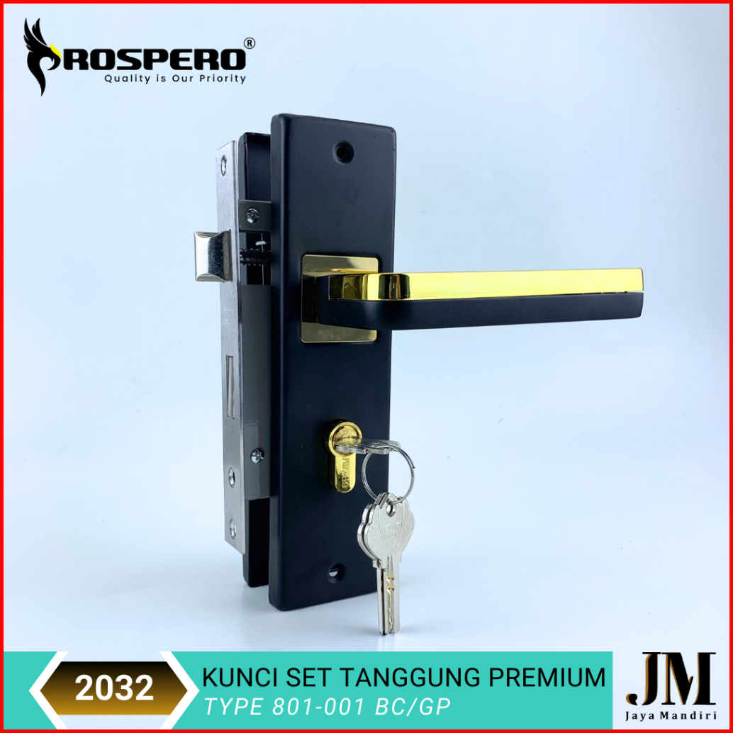 Prospero Kunci Pintu Rumah Tanggung Handle Set Kunci Black Ukuran 20cm 2032
