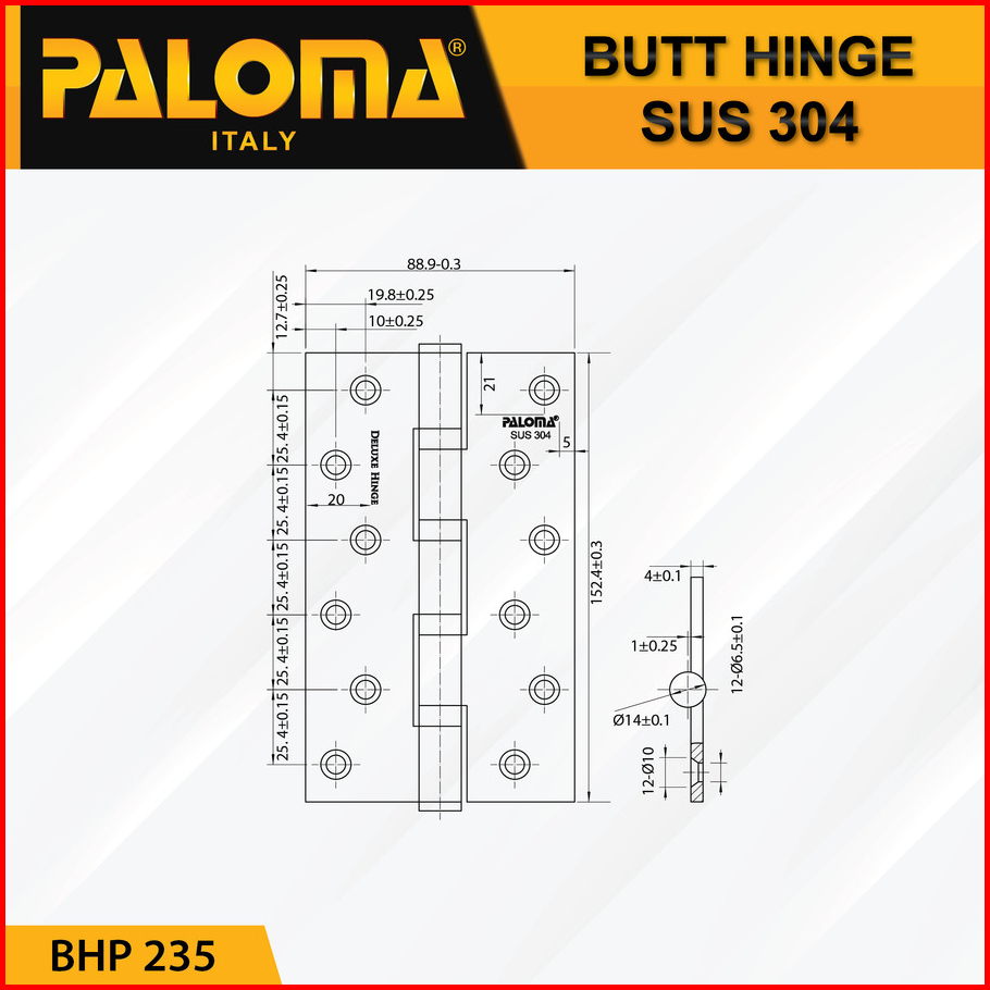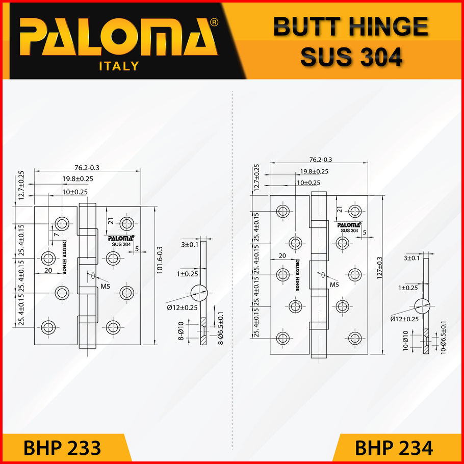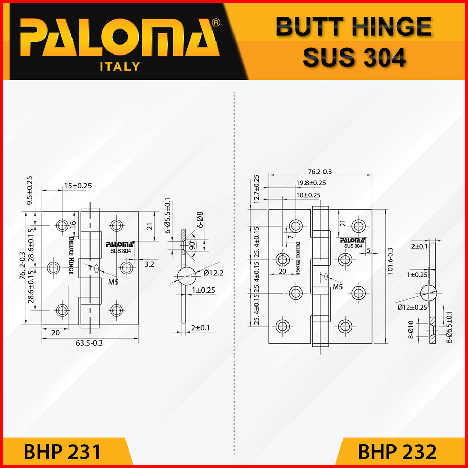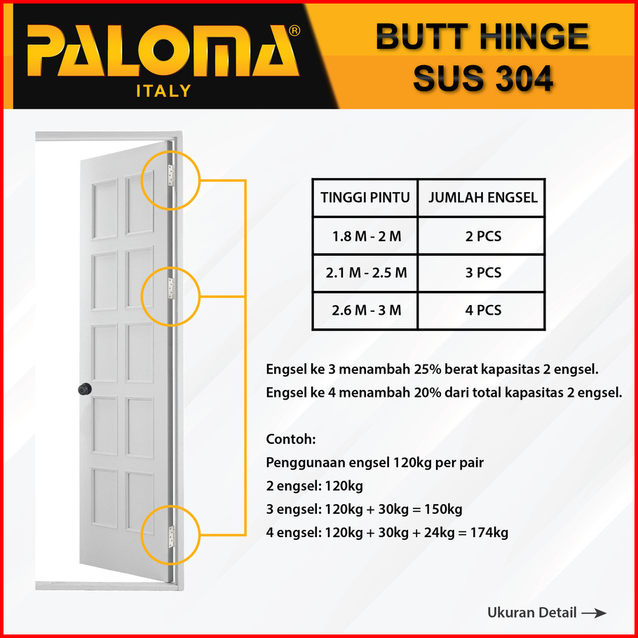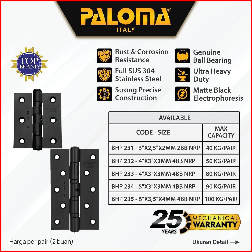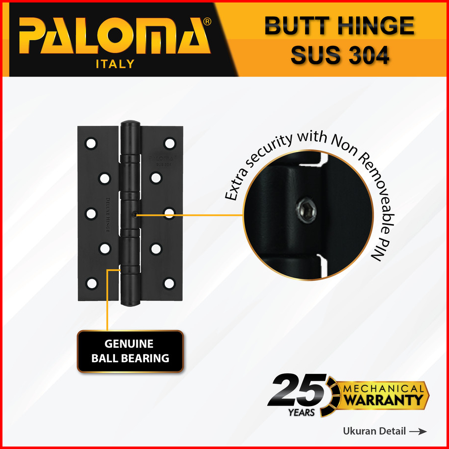 Paloma Engsel Pintu Jendela Kupu Plat Butt Hinge Black Hitam Bhp 2