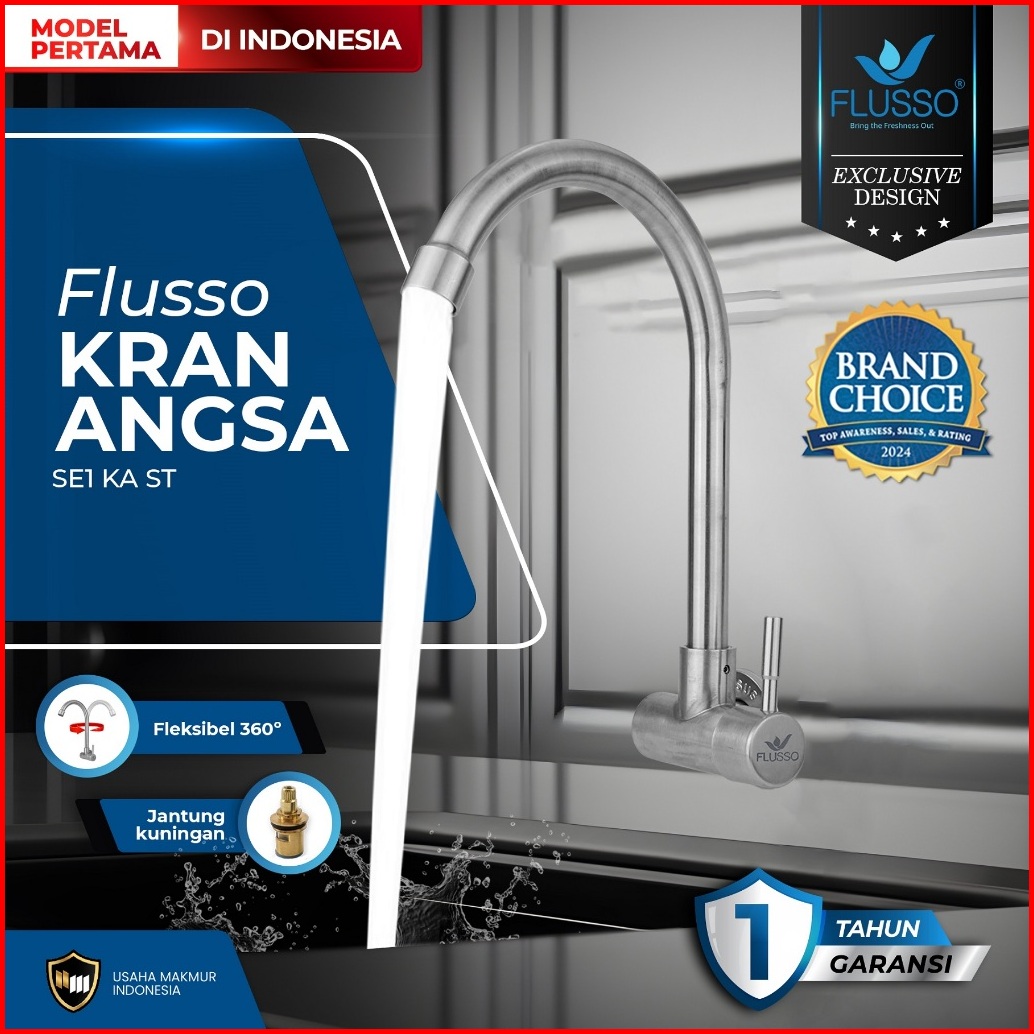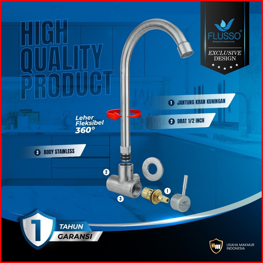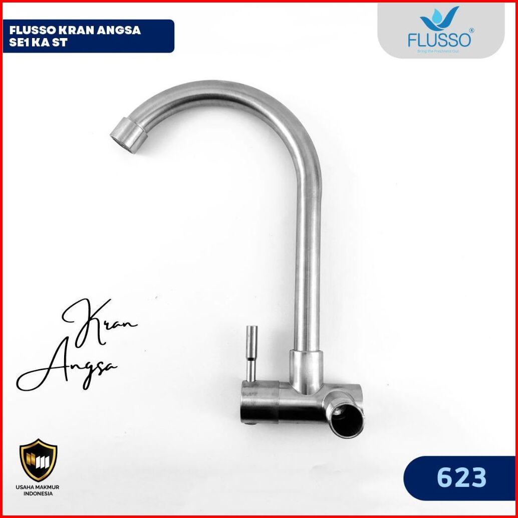 Flusso Kran Keran Air Angsa Tembok Sink Minimalis Premium Stainless Kuningan 623