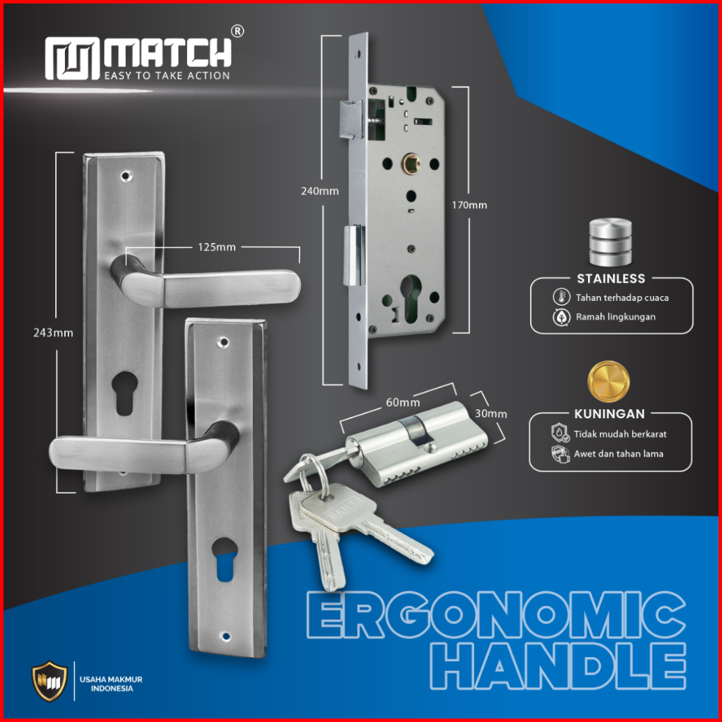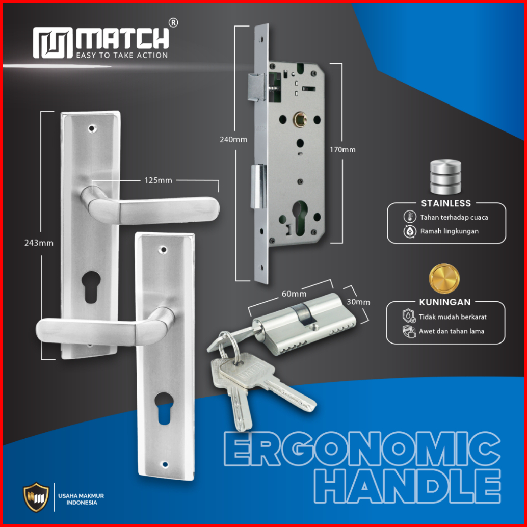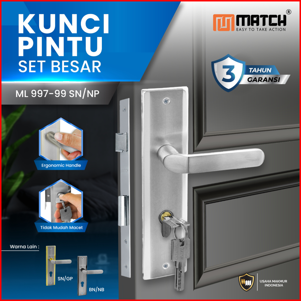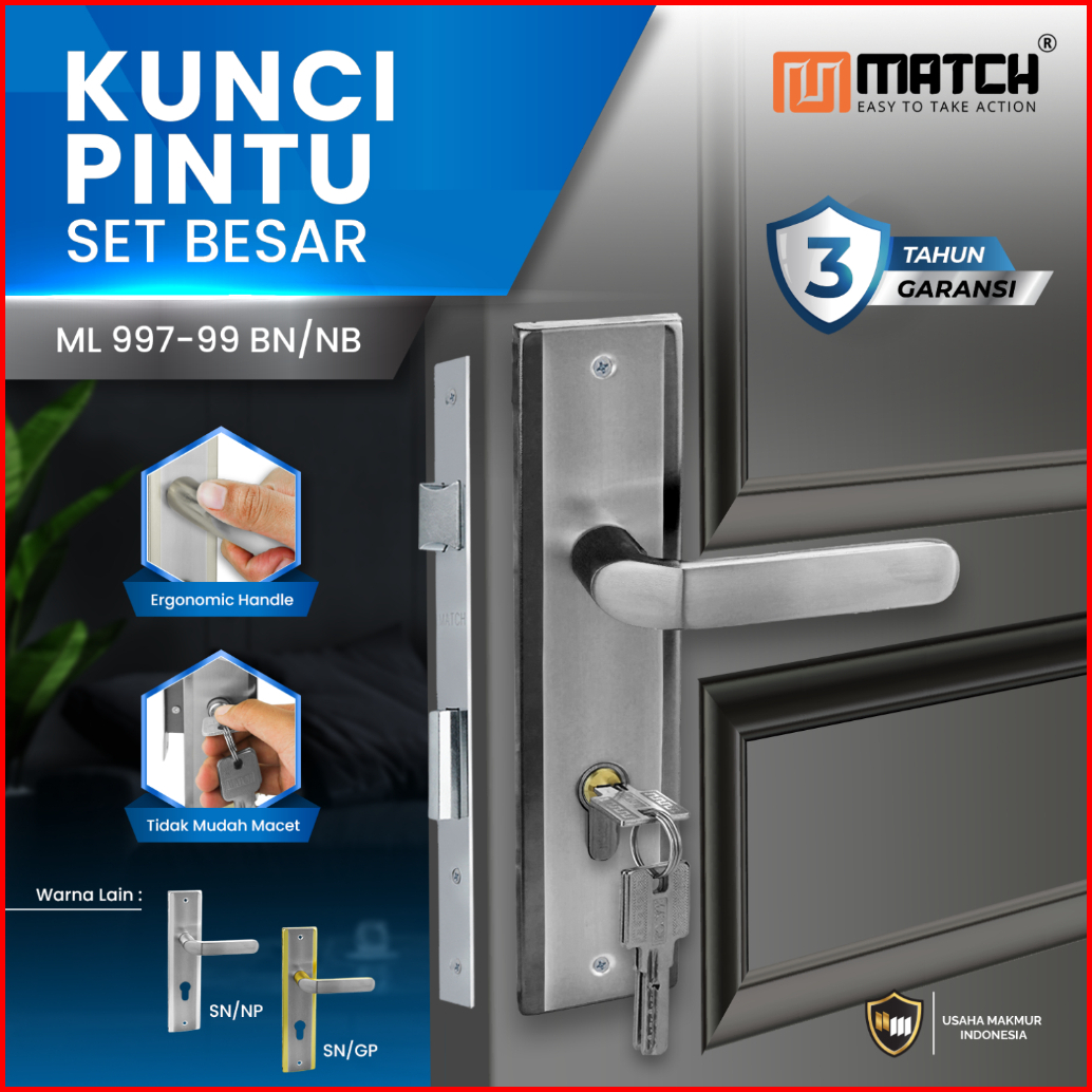 Handle Kunci Gagang Pintu Rumah Set Besar Komplit Stainless Ml997 Match Garansi 3thn