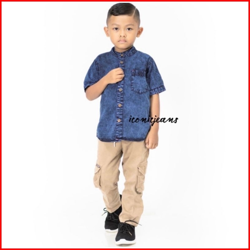 Kemko Anak Kemeja Jeans Lengan Pendek Anak Anak Kemeja Denim Kids